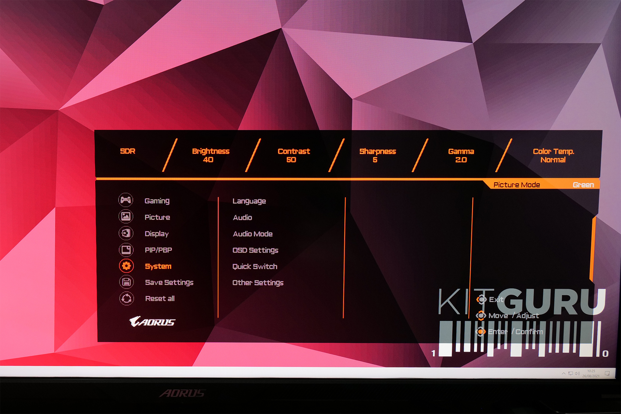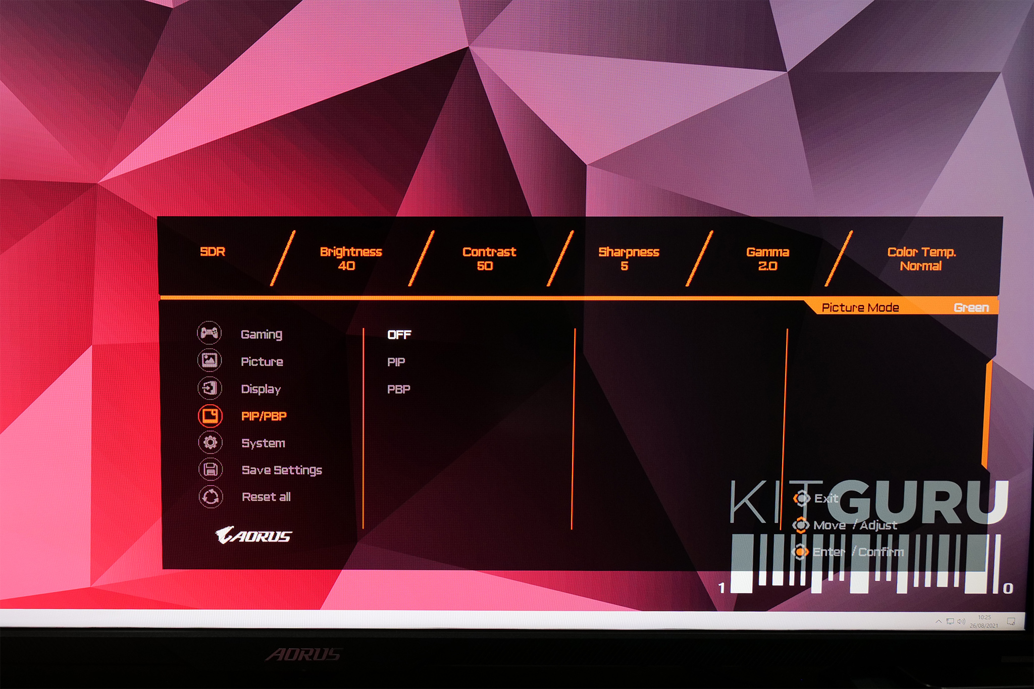 You can also use the navigation buttons to traverse the main OSD. This is split into seven tabs – Gaming, Picture, Display, PIP/PBP, System, Save Settings, Reset all: