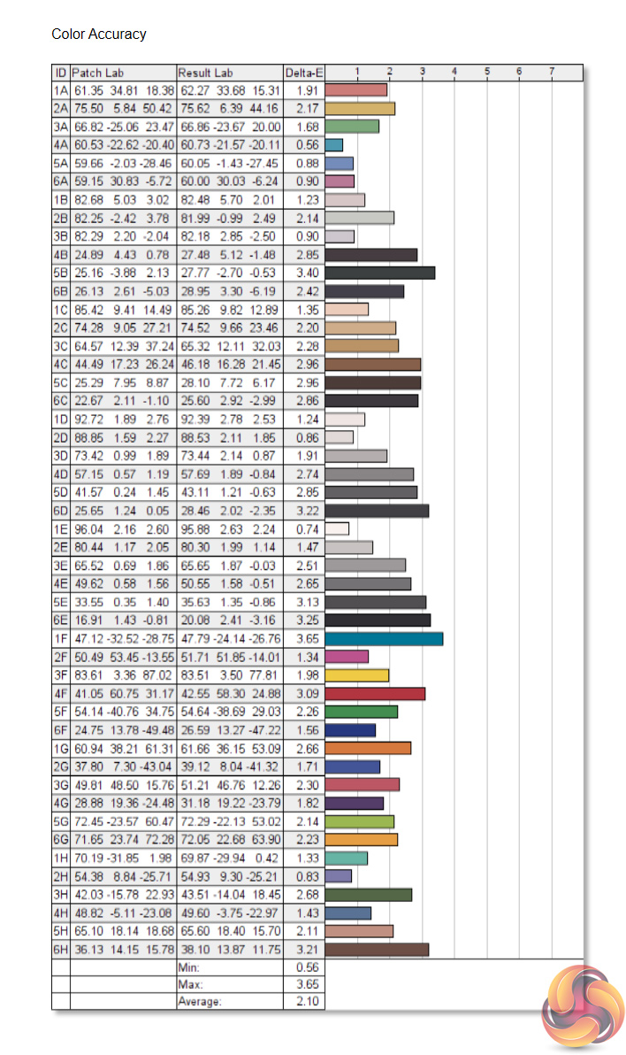 - The colour accuracy, expressed as a Delta E ratio, with a result under 3 being fine for normal use, and under 2 being great for colour-accurate design work.