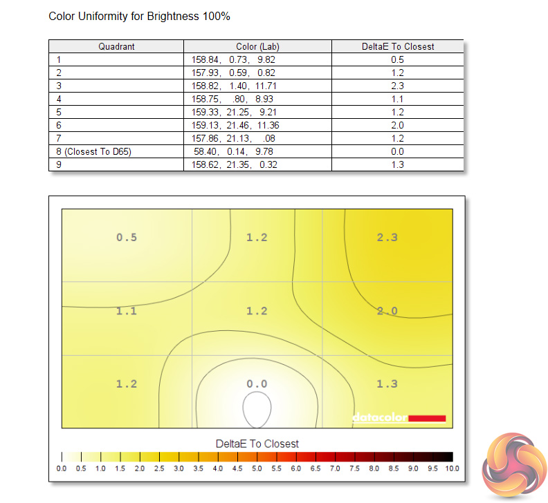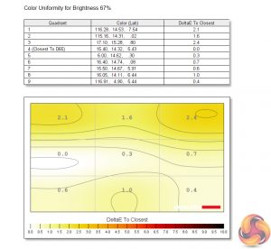 Colour uniformity is even better, with little variation across the board, with the top right corner diverging just slightly.