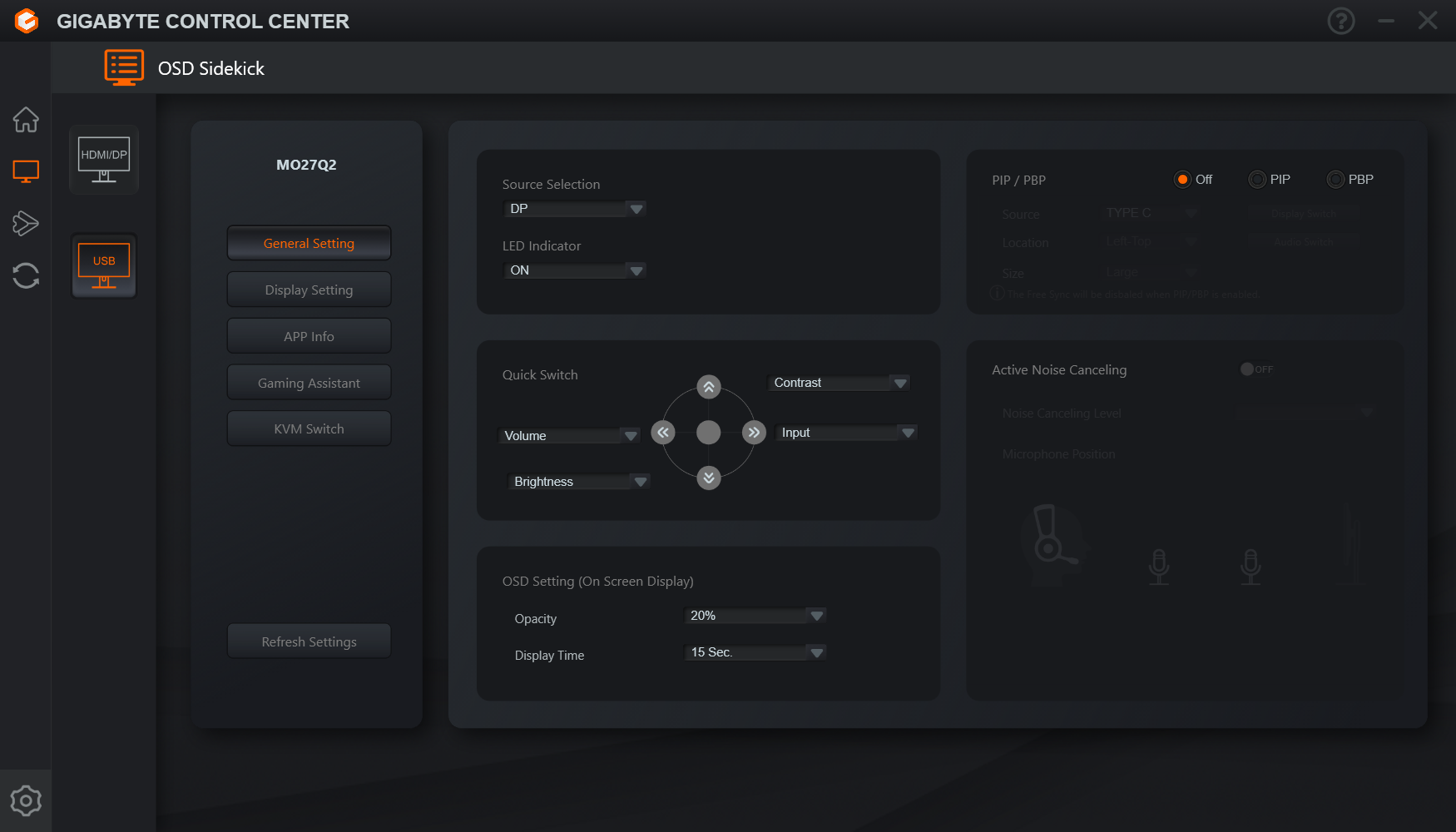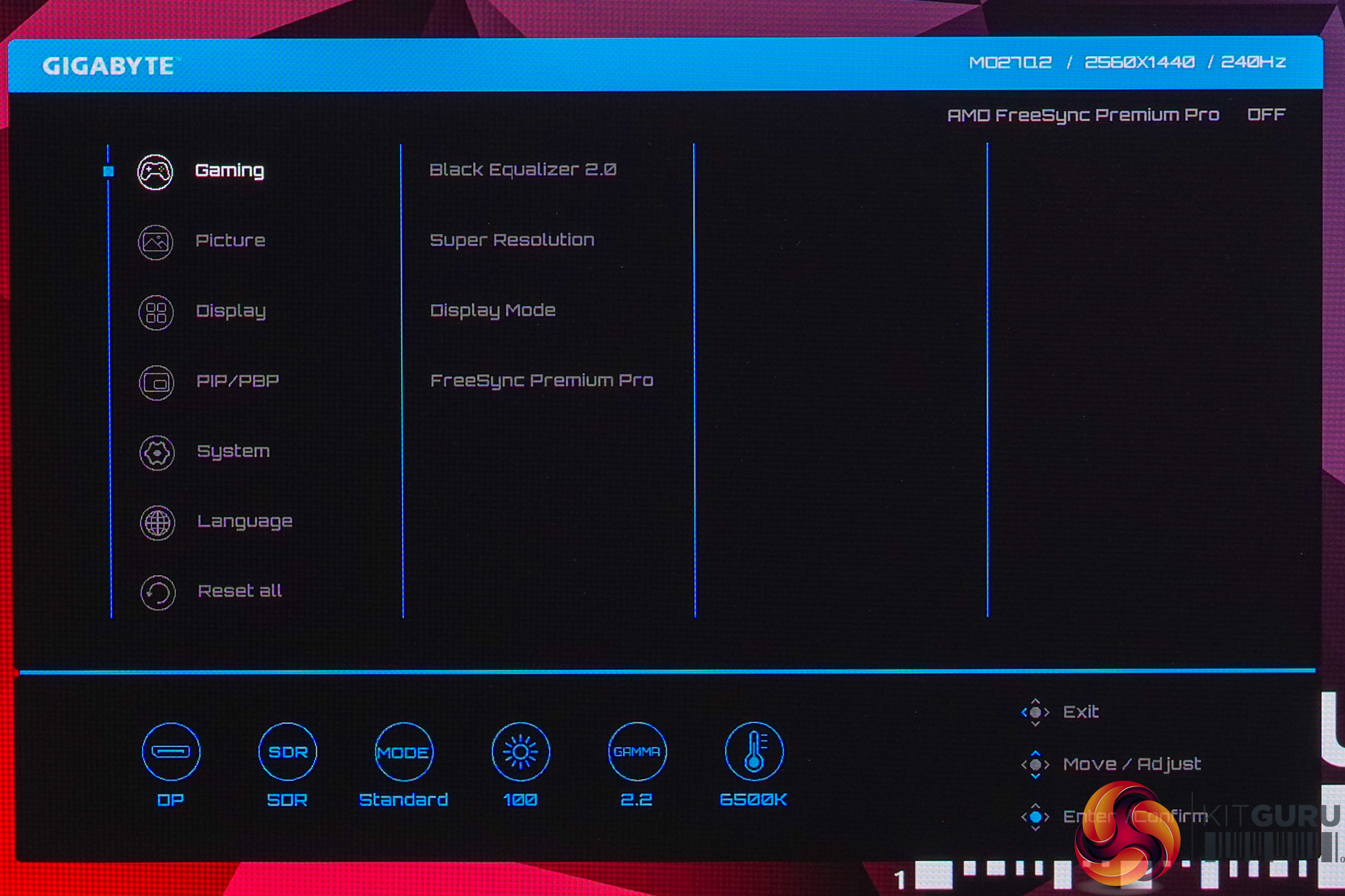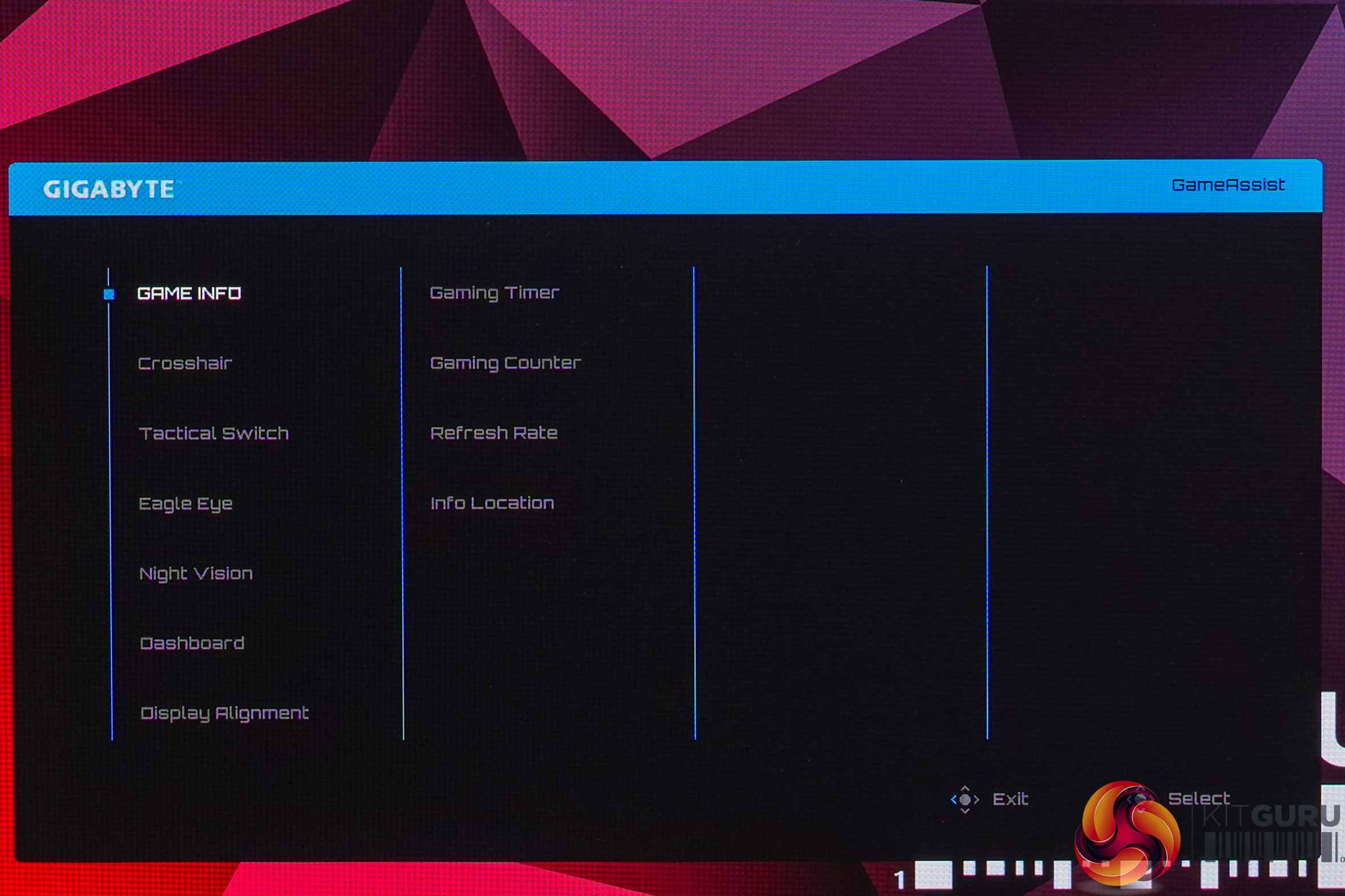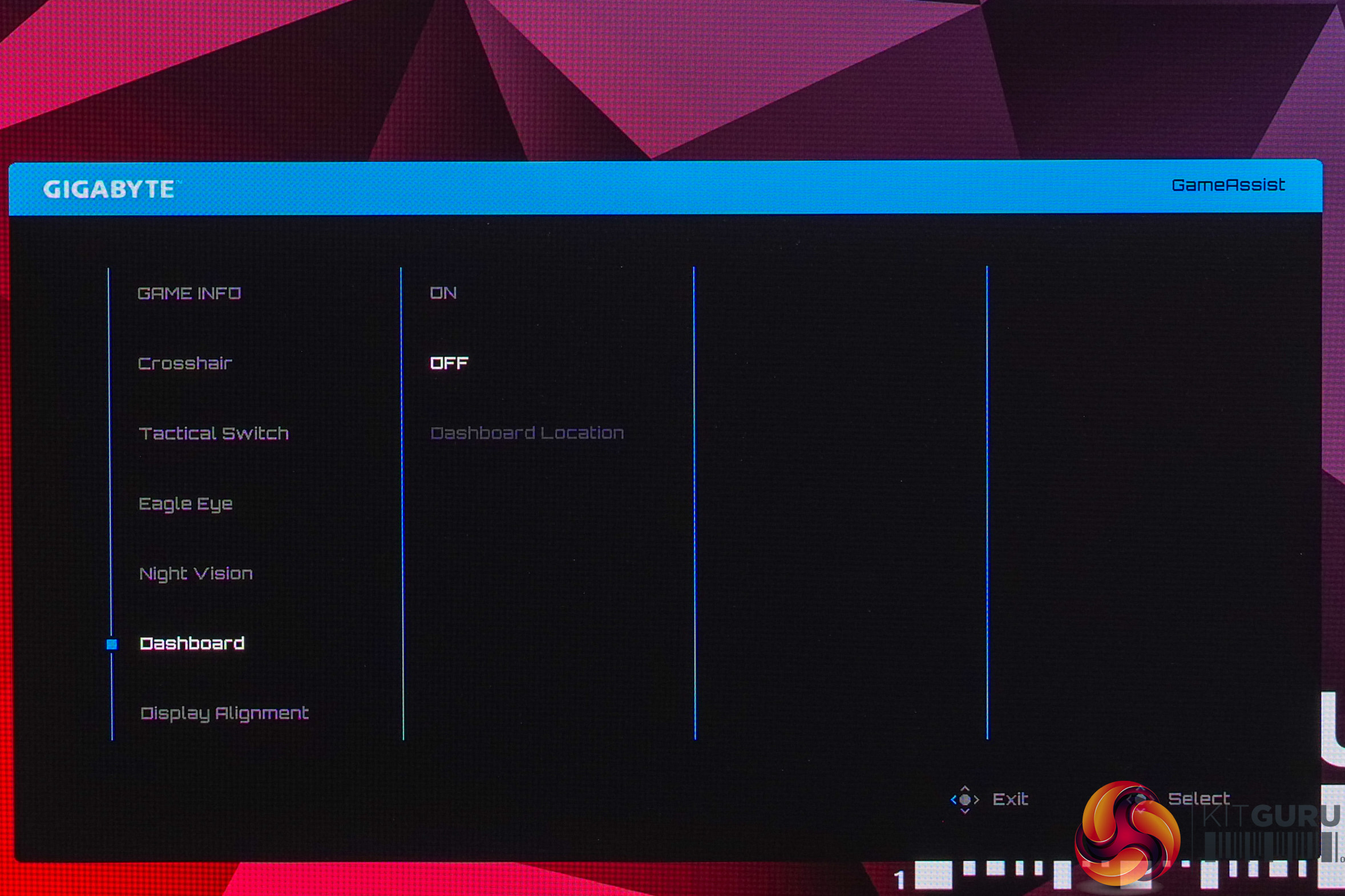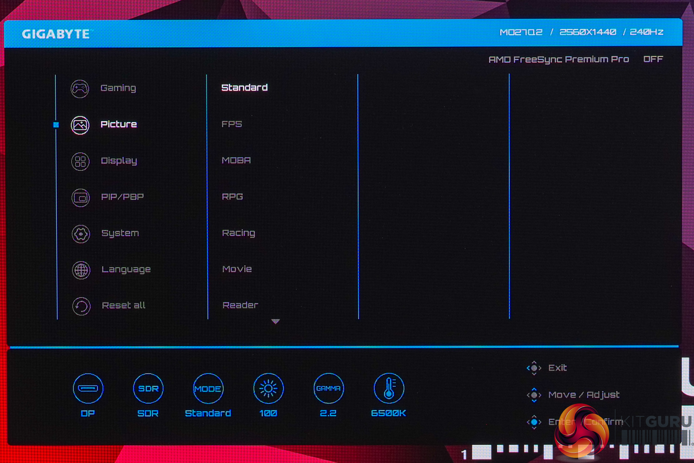 You can also use the Gigabyte Control Centre software to control the screen's options, giving you control over most functionality from your desktop. This also shows the current monitor firmware, but Gigabyte haven't yet confirmed to me if user-upgradable firmware is a possibility on this monitor, but we will be sure to update the review if we hear back.