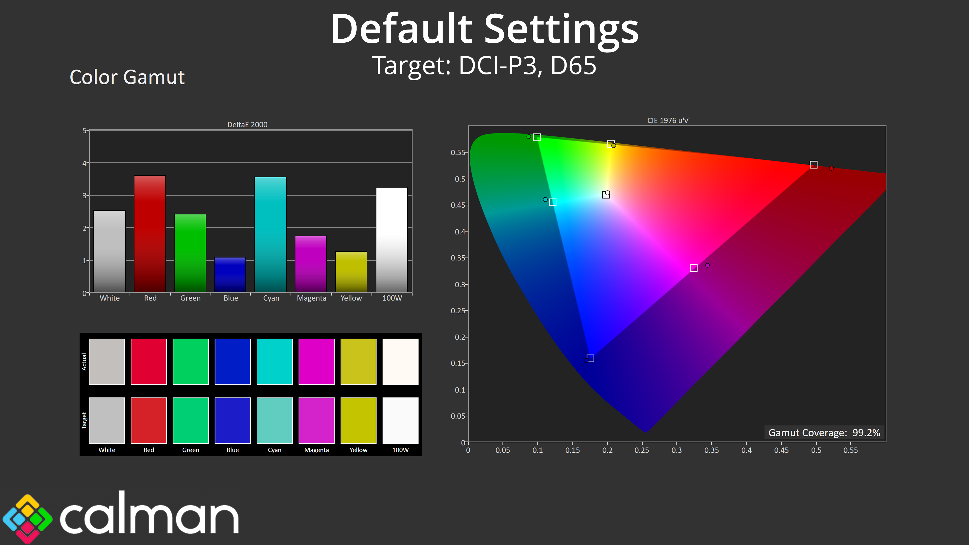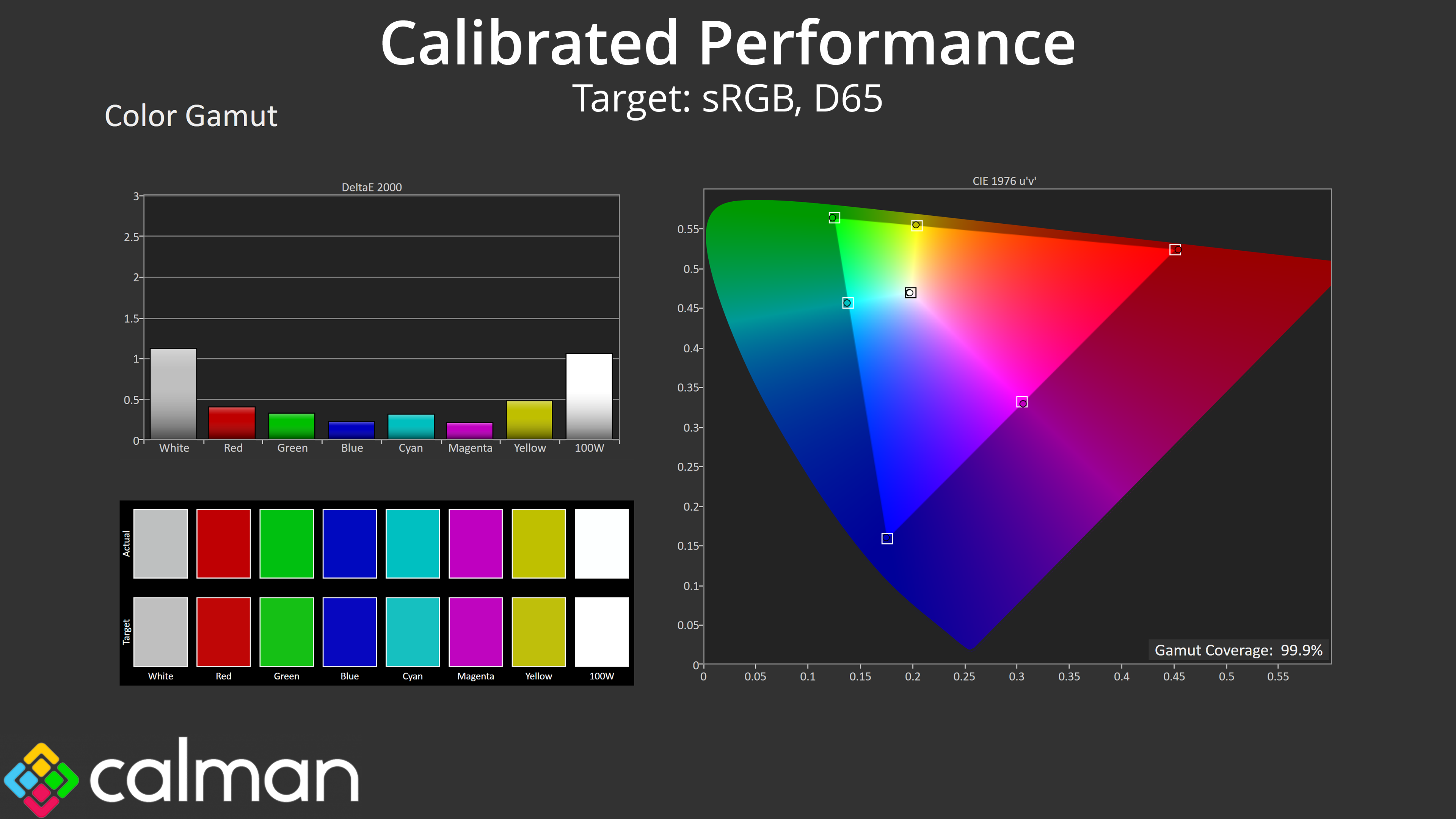 - Gamut coverage, primarily focusing on sRGB and DCI-P3 colour spaces.