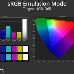 Thankfully MSI has included an sRGB emulation mode in the OSD, and it does a great job at clamping the gamut, while greyscale performance is still just a touch warm but generally accurate. The saturation and colour accuracy average dEs also improve compared to stock, with results in the 1.2-1.4 range, indicating high levels of accuracy, so this mode is well worth using.