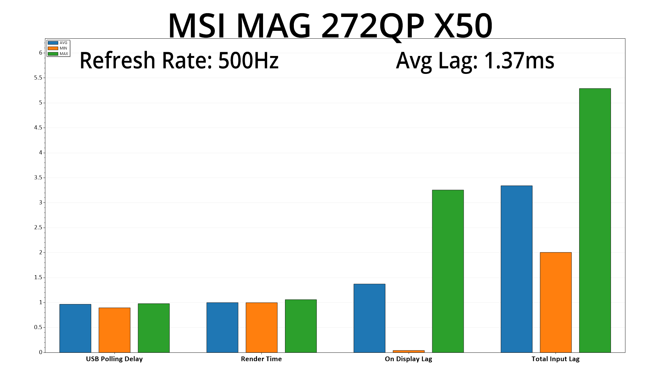 There's also more good news as latency is very low, averaging 1.37ms. A frame at 500Hz lasts for 2ms, so latency is equivalent to about two-thirds of a frame, so nothing at all to worry about.