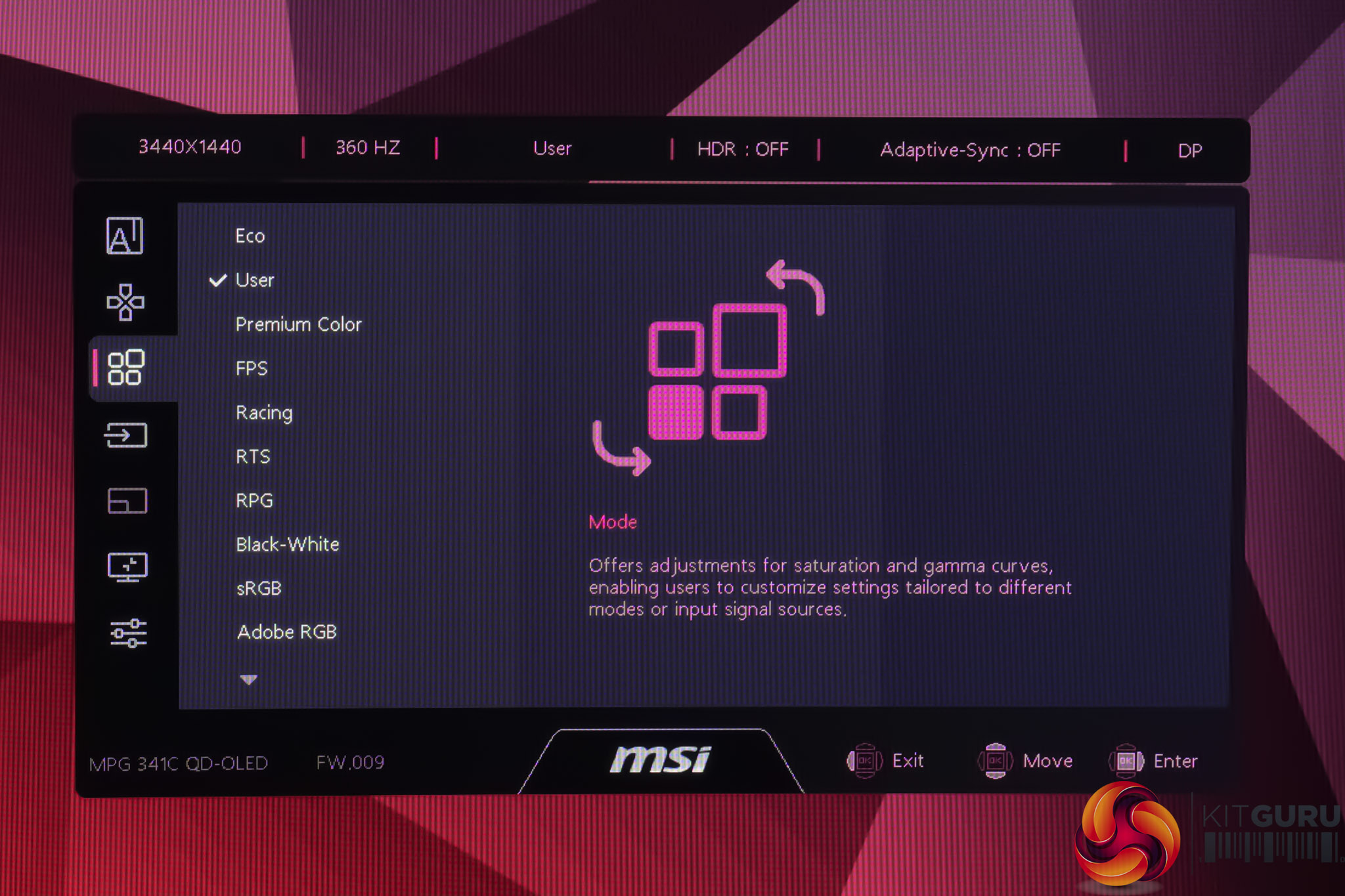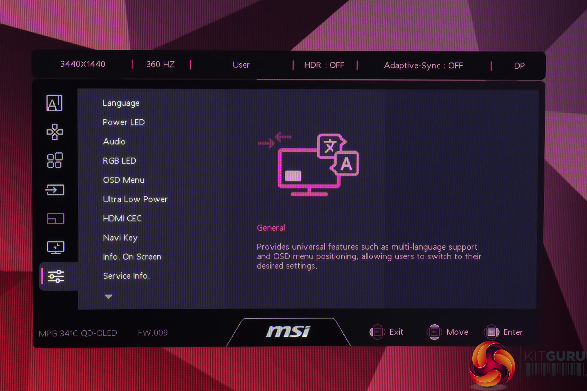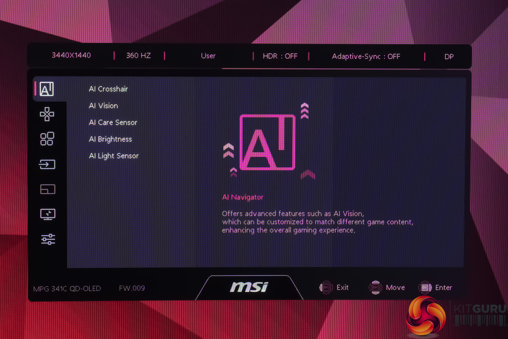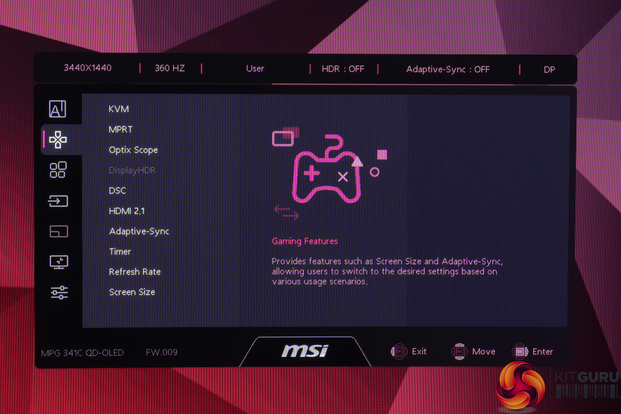 MSI's Gaming Intelligence app will also be supported, but as I received the unit ahead of the official launch, the software isn't ready at the time of review, but MSI tells us it will be available once the monitor lands at retail.