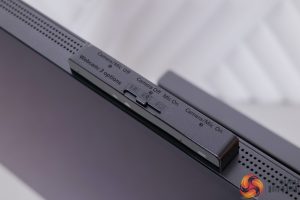 At the top we find the built-in 5MP webcam and a three-stage toggle to allow you to manually enable or disable both the camera and microphones. I presume this is also where Philips has included the sensor for the PowerSensor (AKA proximity sensor) feature which we discuss on the next page.