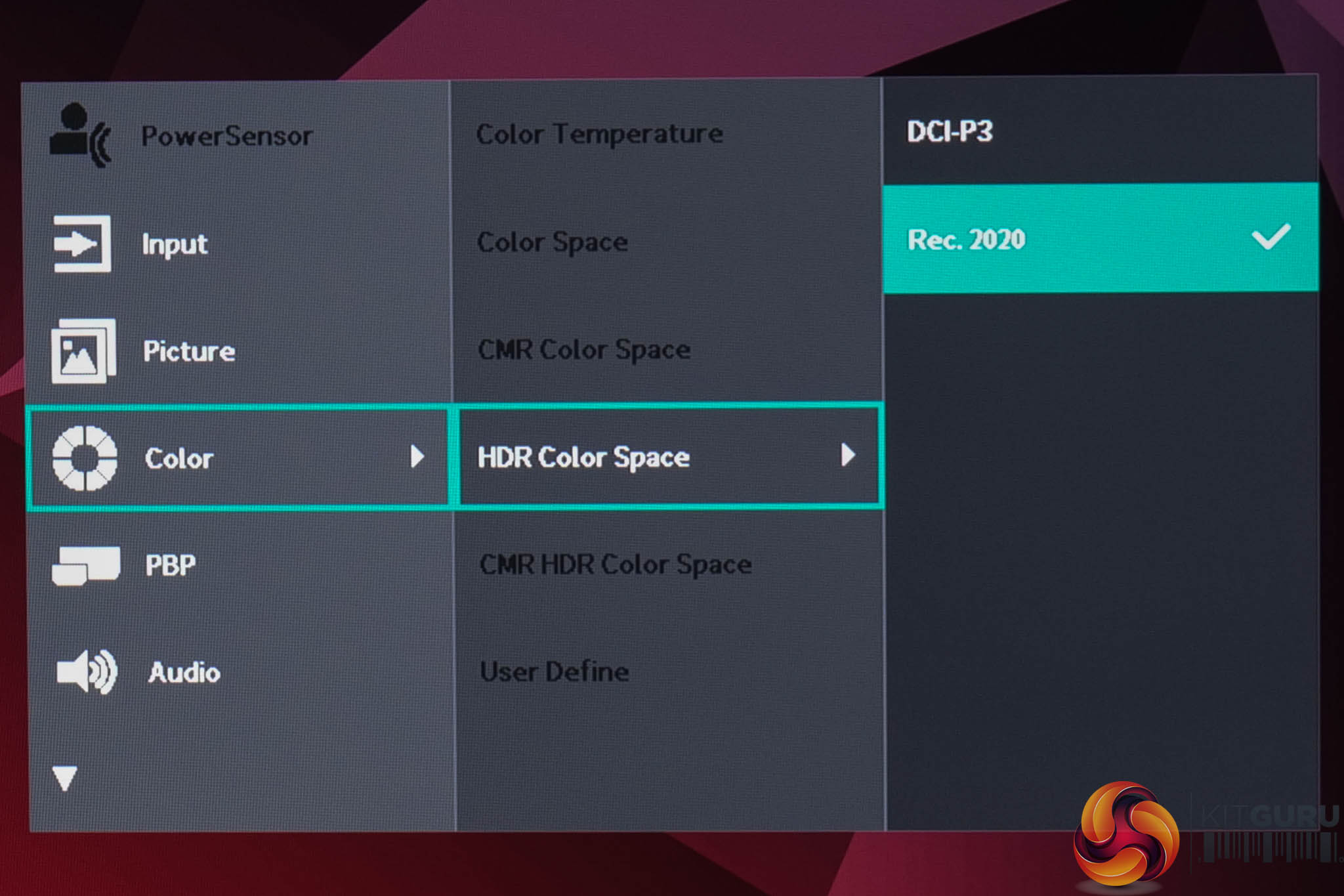 We did also enable HDR and revisit the OSD to give you an idea as to what changes – primarily you get to choose the HDR mode from within the Picture tab, enable or disable Local Dimming, and you can also choose between two options for the HDR colour space.