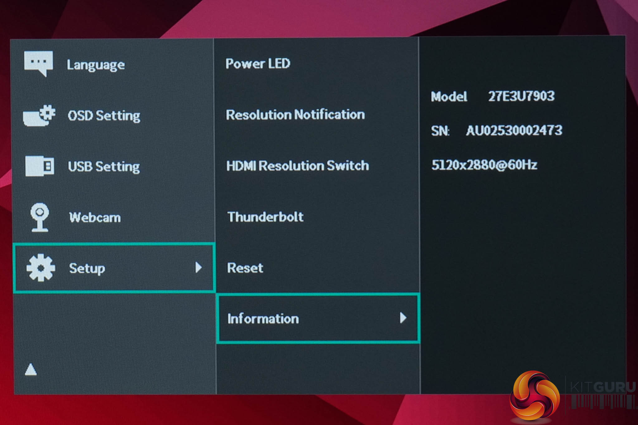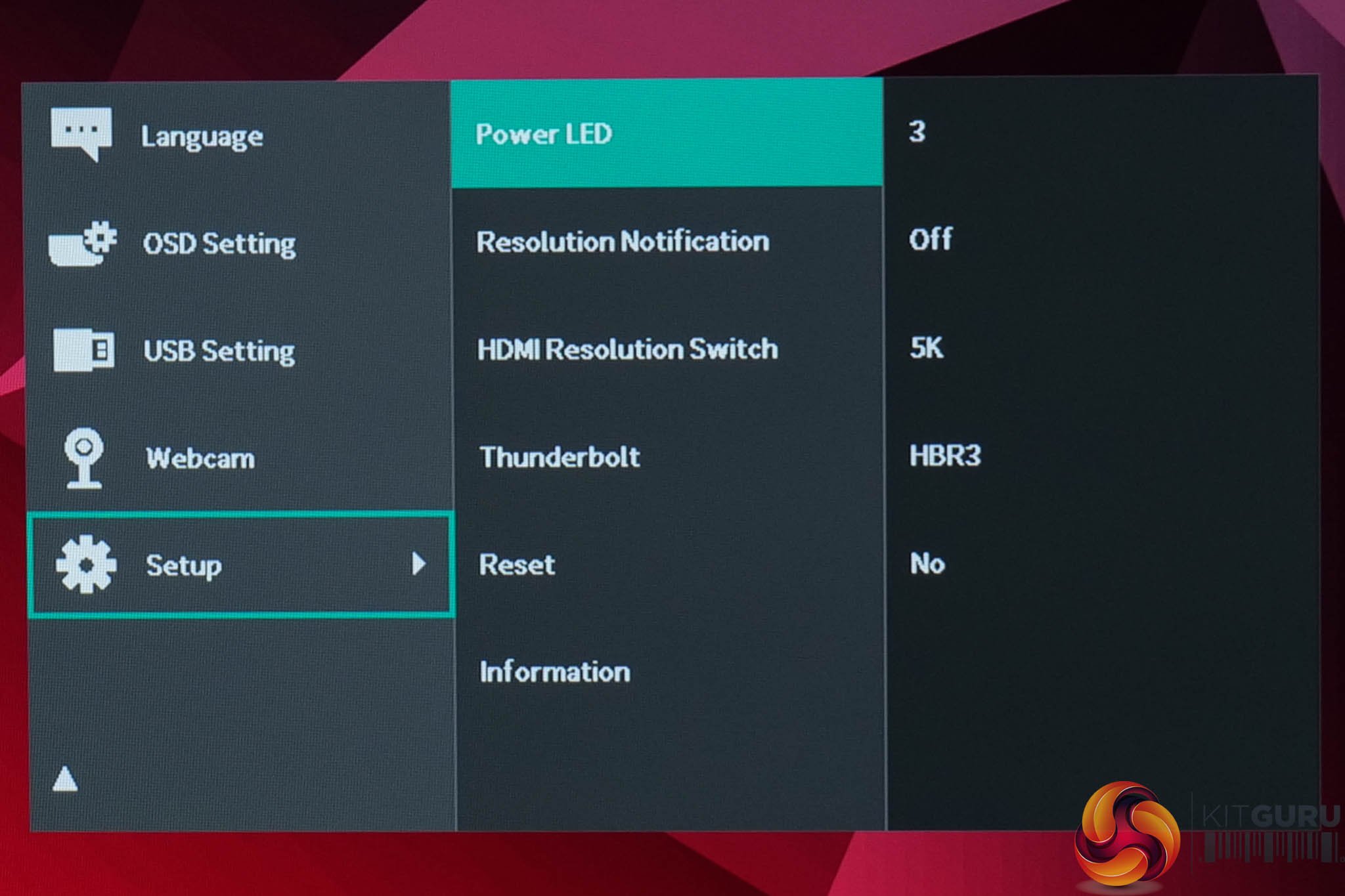 The final tab is Setup, giving you control over any other miscellaneous settings such as Thunderbolt and the power LED, while it also provides a handy information window.
