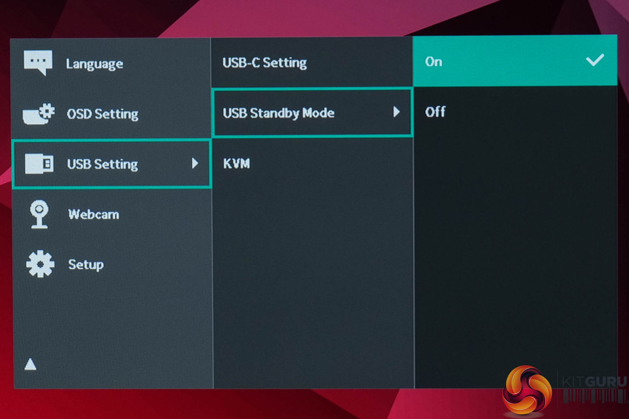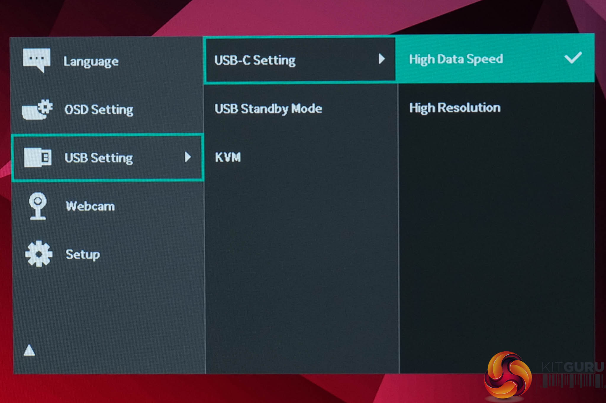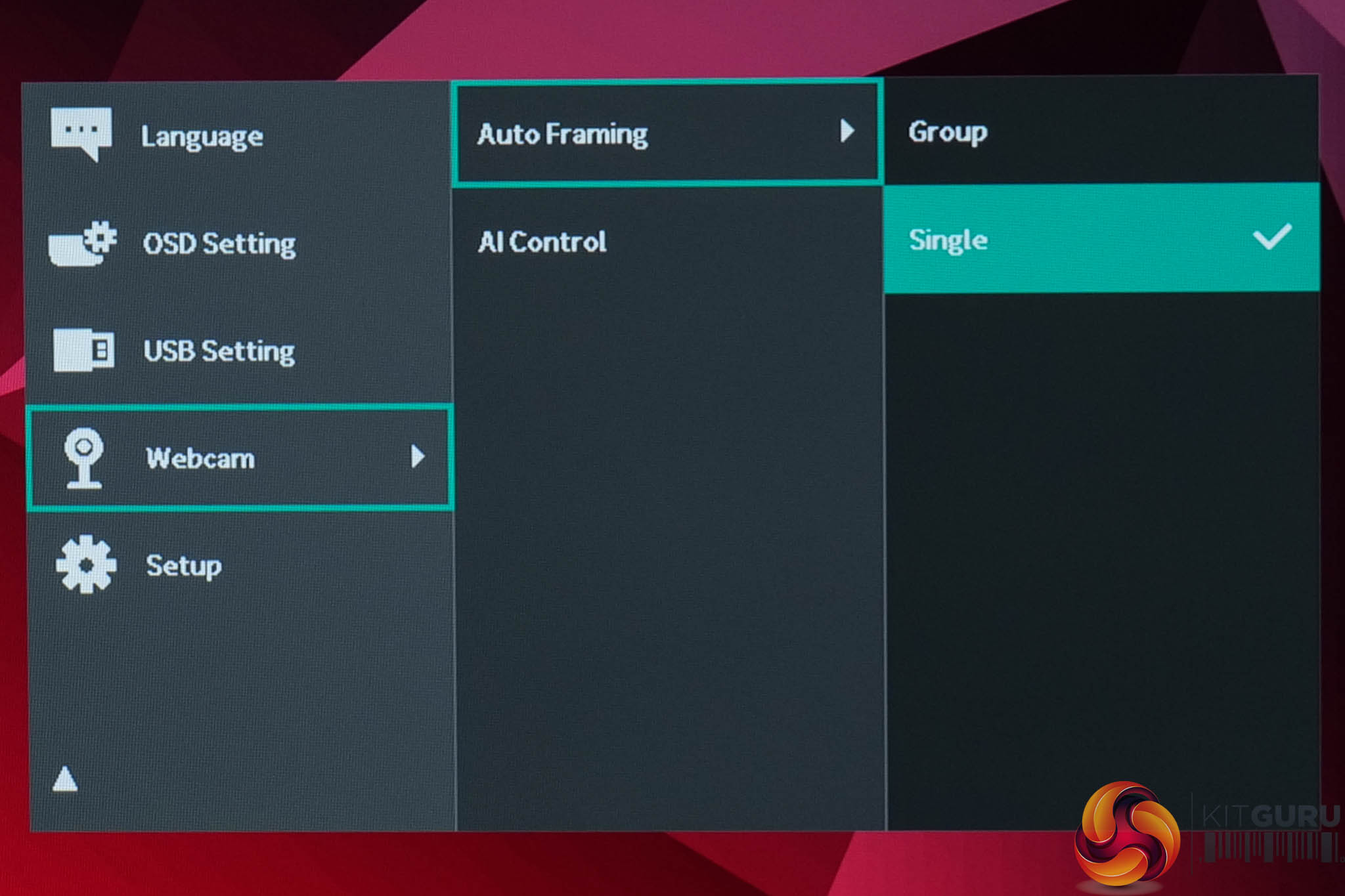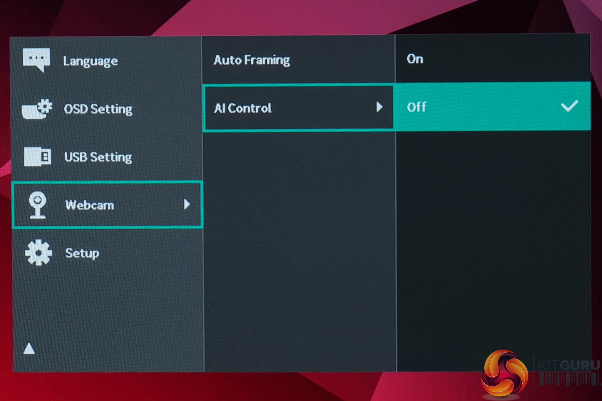 Next is the USB Setting tab where you have control over the USB input and KVM functionality, while the Webcam page offers a choice of Auto Framing (think Center Stage on Mac) and an AI control option. We show an example of the webcam footage later in the review.