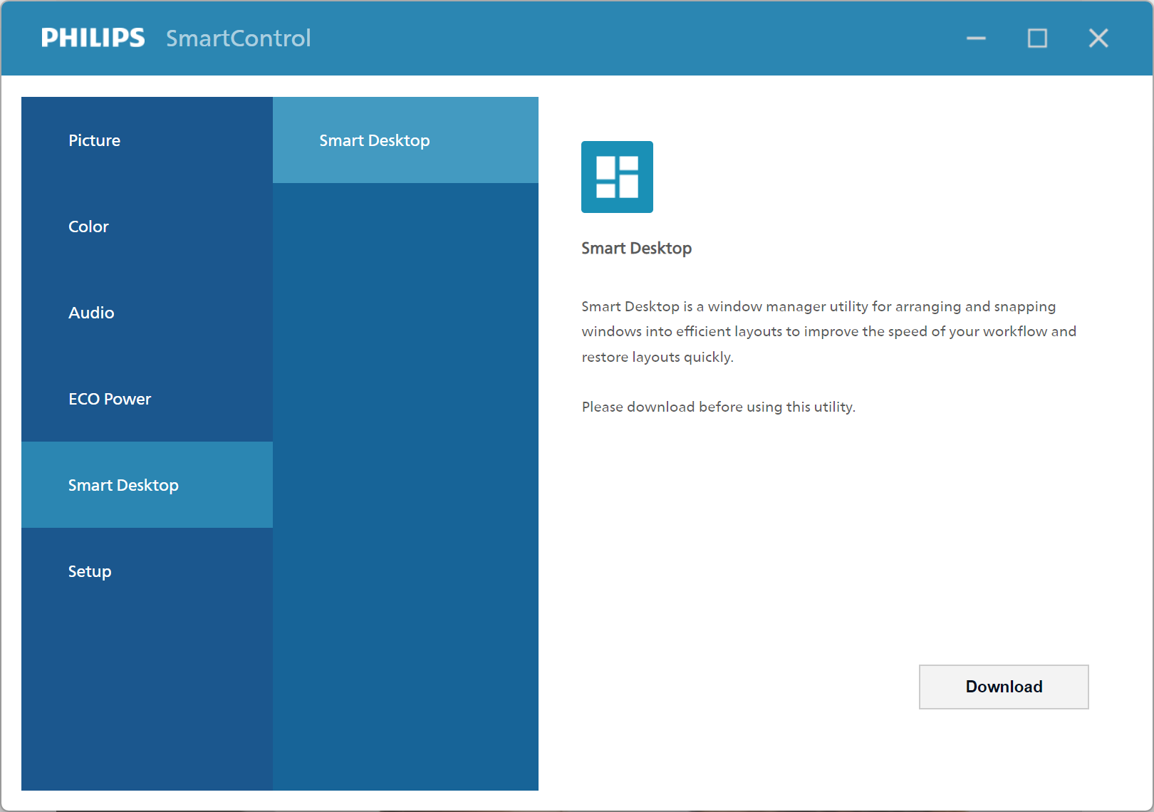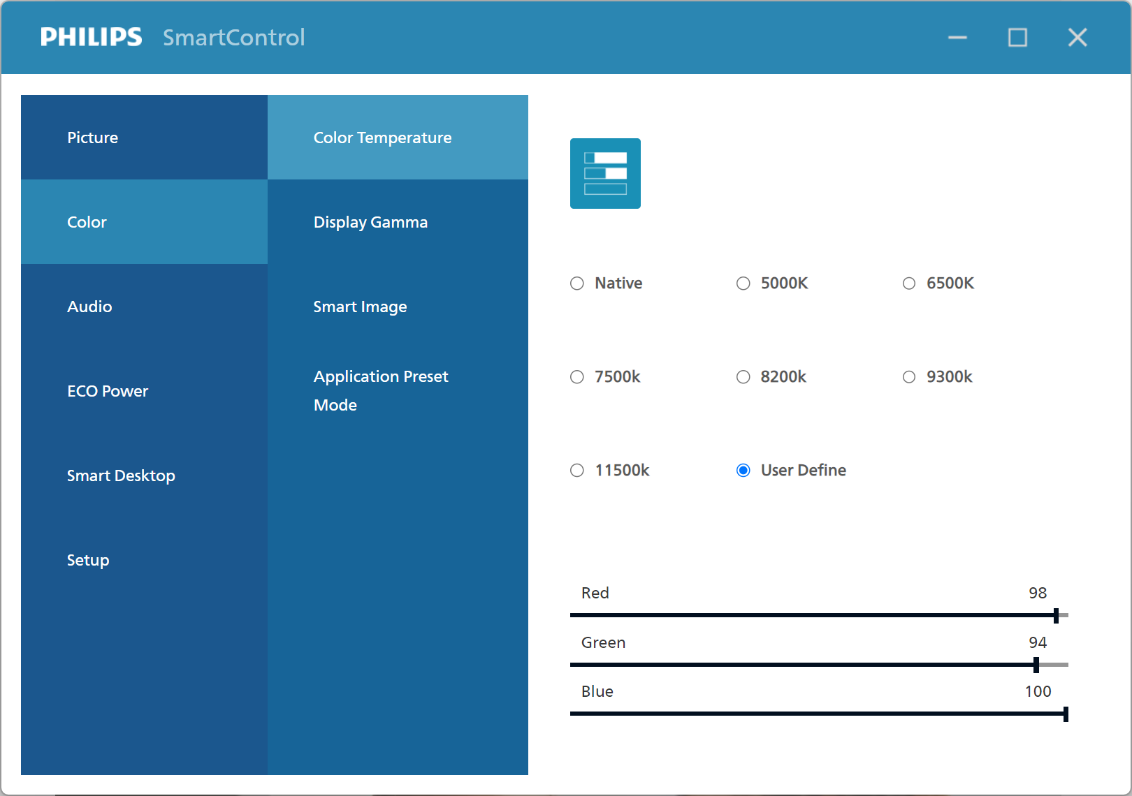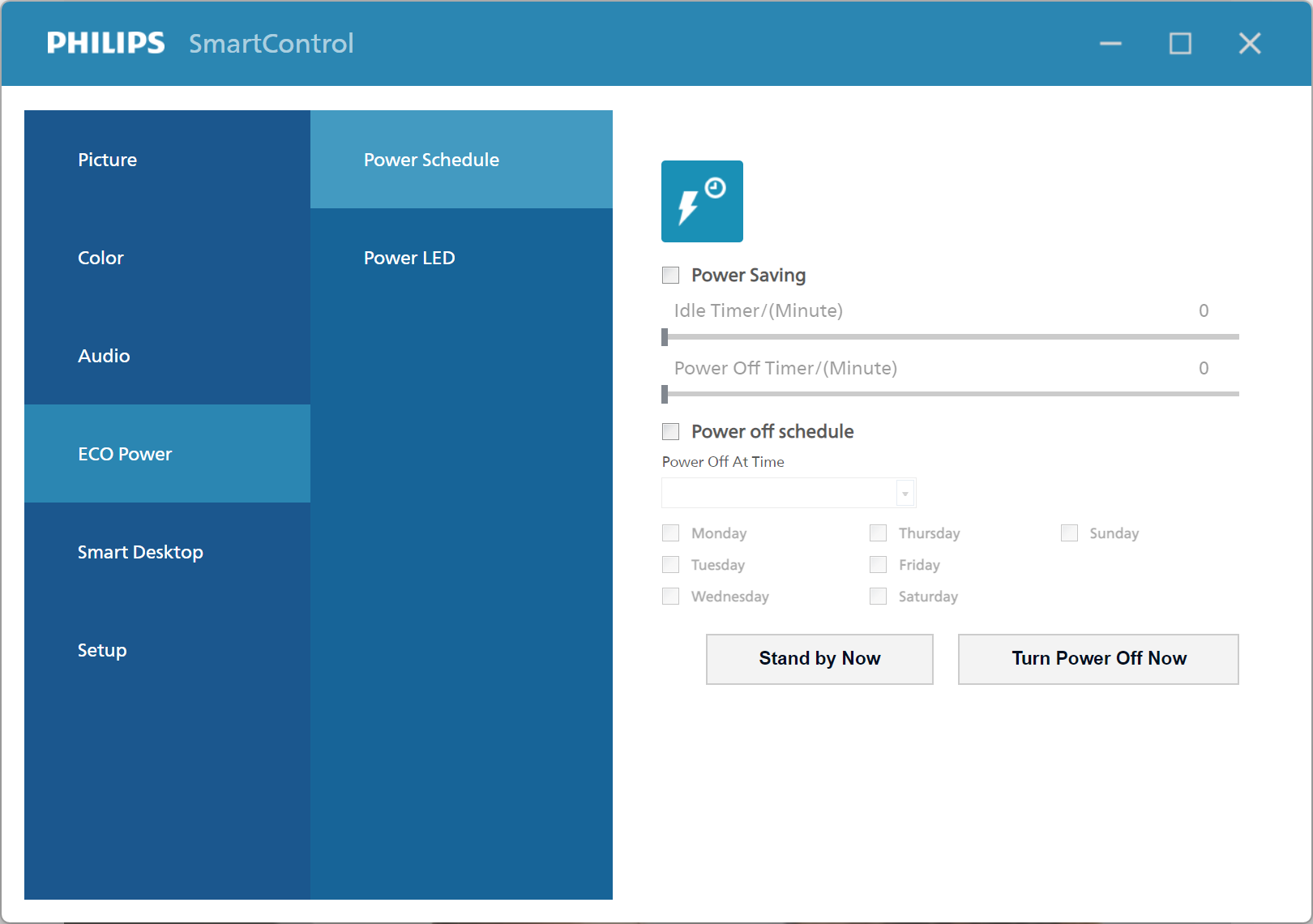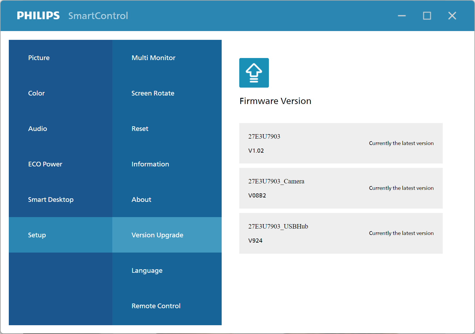 Lastly, Philips also offers its SmartControl software. It's looking quite dated now and needs an overhaul to modernise the UI (as we have seen with Evnia's Precision Centre software). Still, it works fine and provides options for firmware updates, always a feature I like to see included.