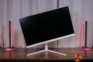 It's great to see the included stand ticking all the boxes though, with 130mm of height adjustment, 30 degrees of swivel in both directions, tilt from -5 to 20 degrees, and then full 90 degree pivot functionality so the display can be used vertically. VESA 100×100 mounts are also supported.