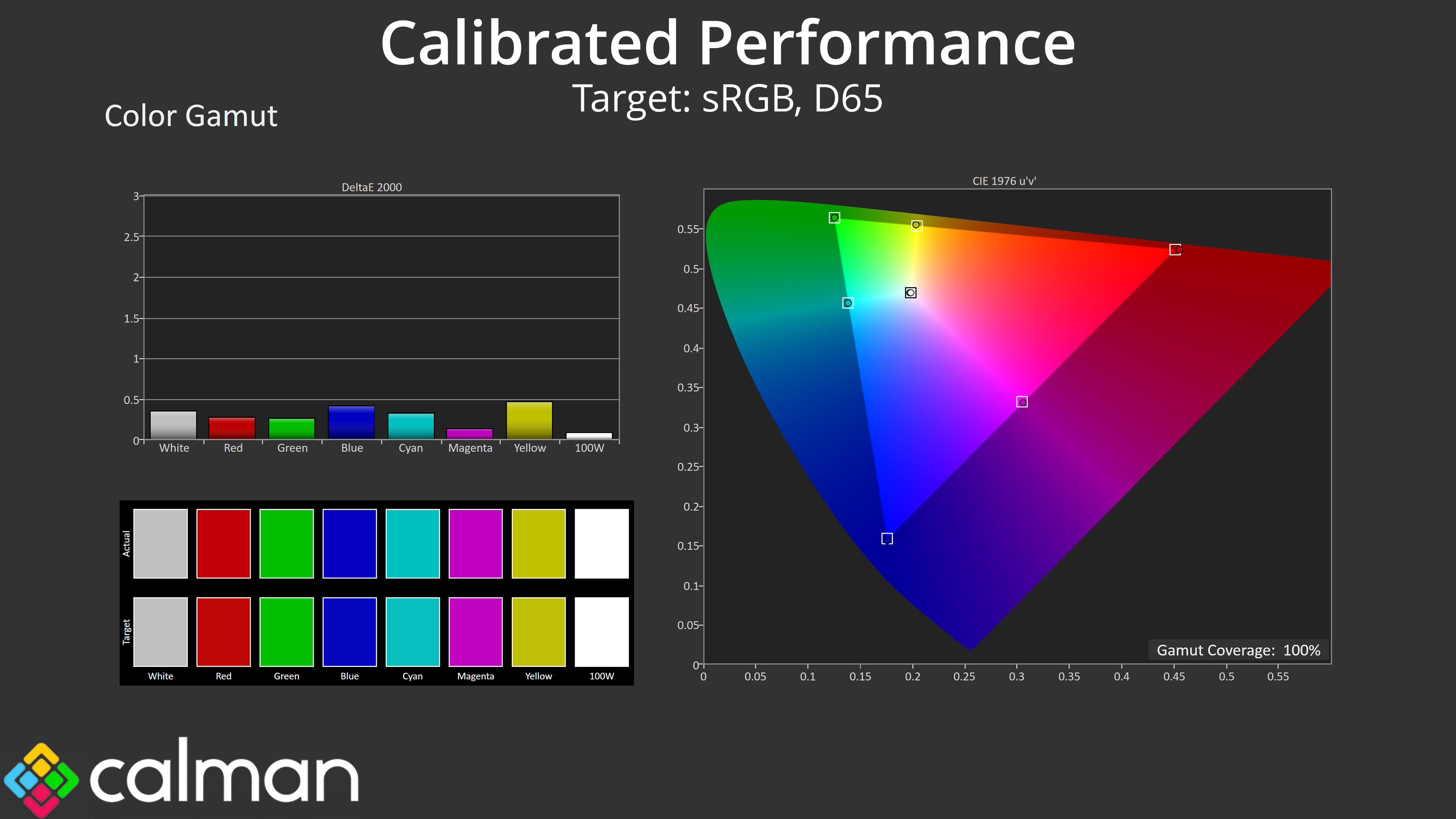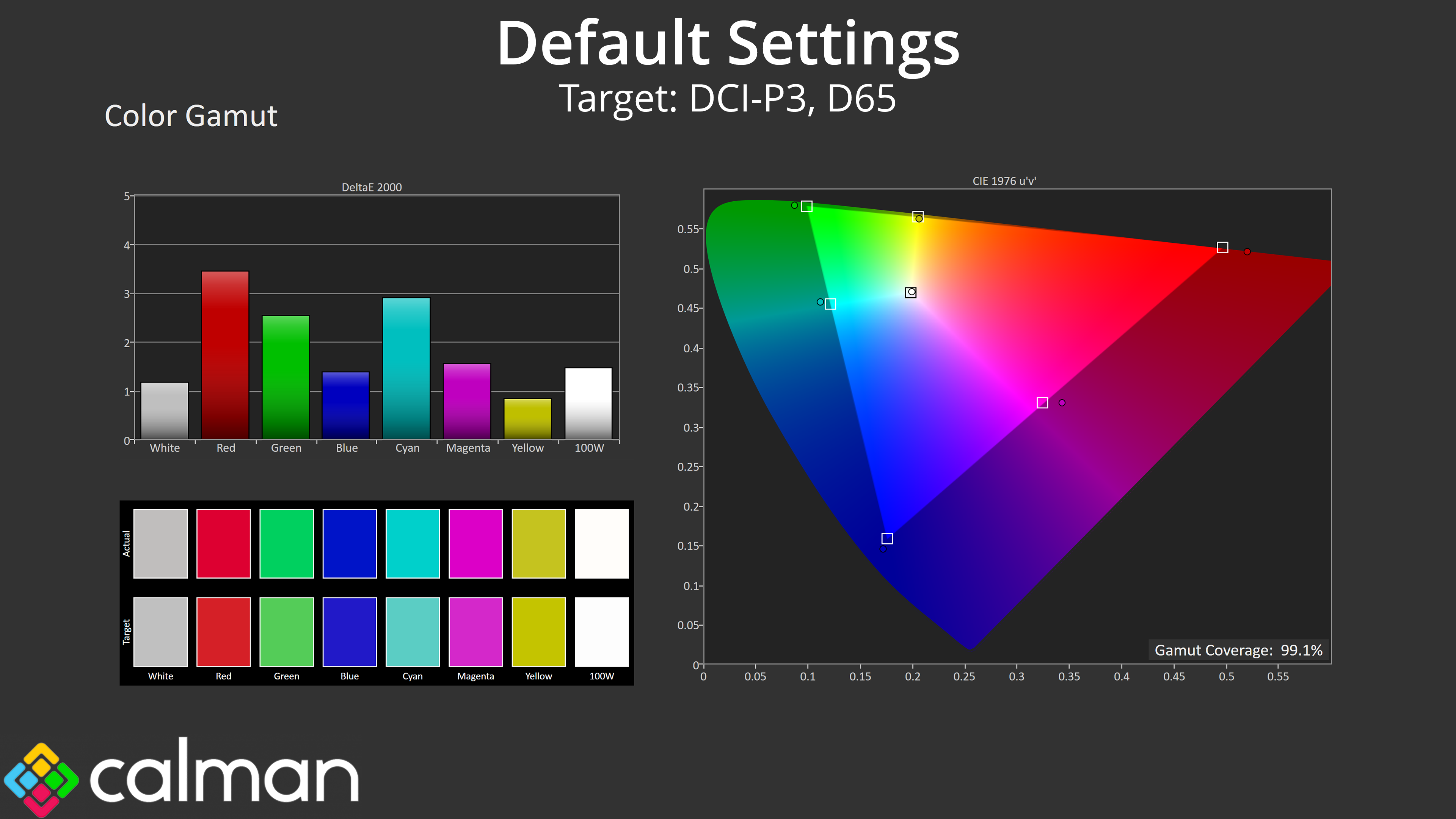 - Gamut coverage, primarily focusing on sRGB and DCI-P3 colour spaces.