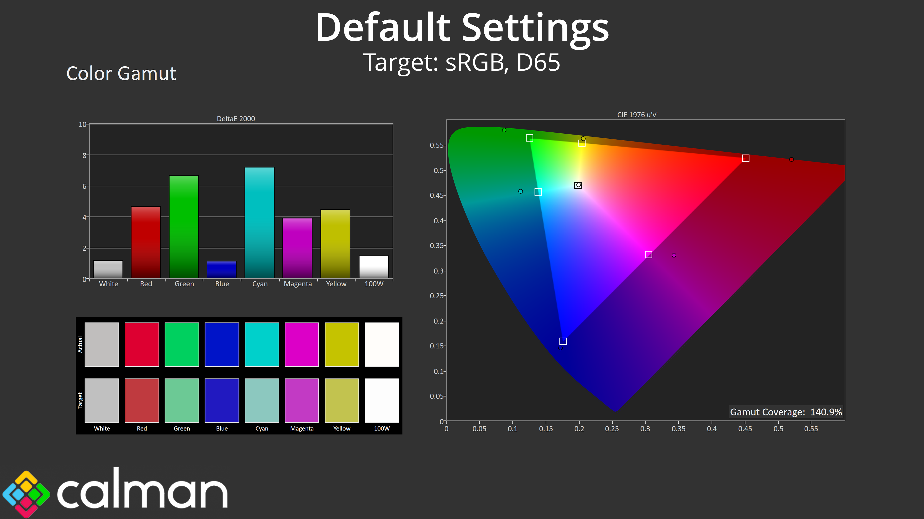 For peak performance we ran through a full calibration using Calman Ultimate. I can't imagine too many people will be calibrating a budget OLED, but you never know and the results go to show what the panel is capable of if you have the right software and hardware tools.