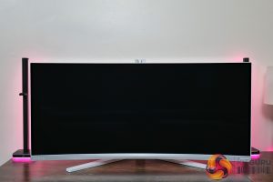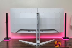 Whatever your thoughts on the aesthetic, the included stand has a good variety of ergonomic adjustments. This includes 150mm of height adjustment, 20 degrees of swivel both left and right, as well as tilt from -5 to +20 degrees. There's no pivot/rotation function here, but considering this is a curved ultrawide, it's not a real loss in my opinion. VESA 100×100 mounts are also supported for those who want to use a third party stand or arm.
