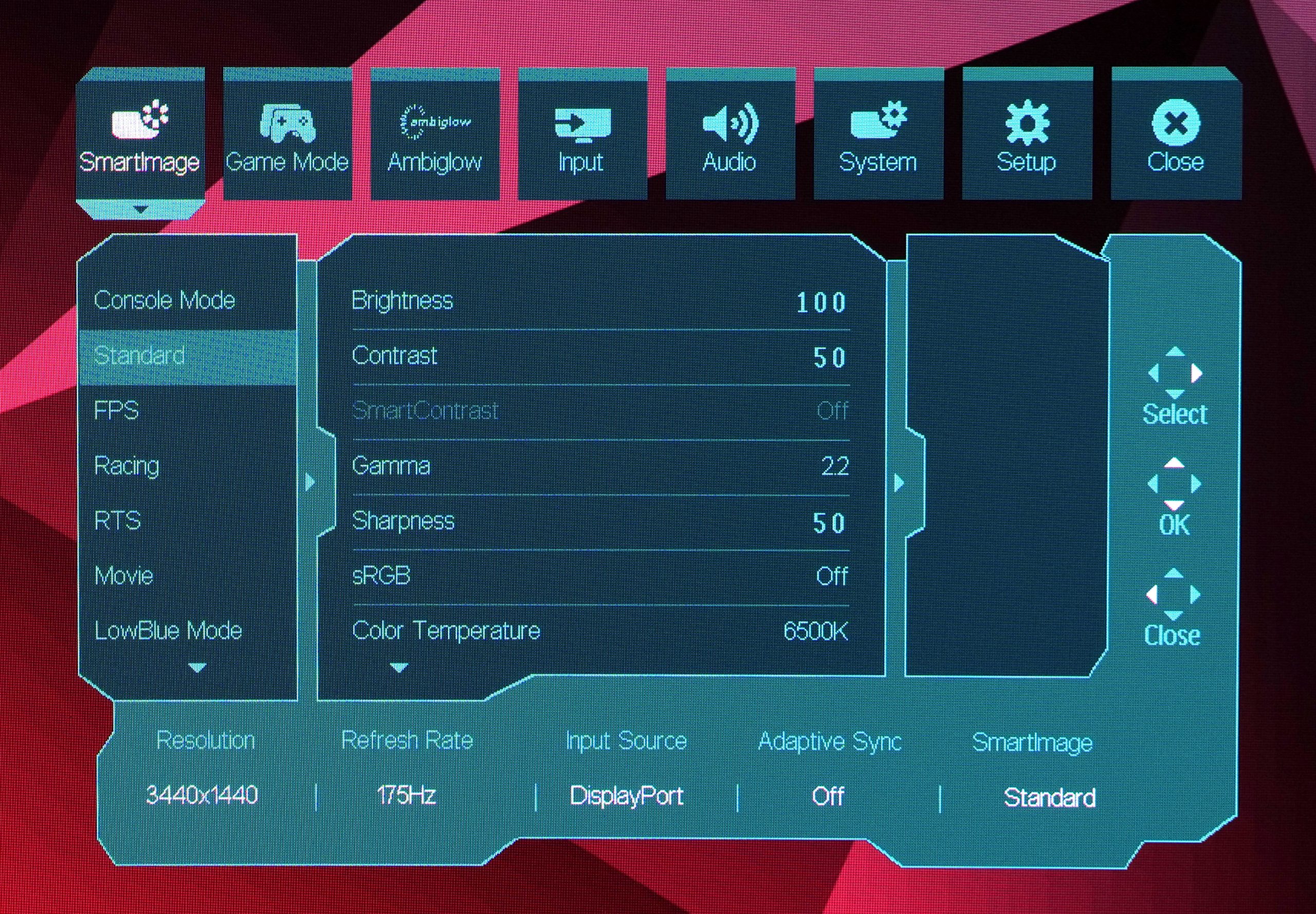 To be honest, the OSD used by Evnia here is pretty ugly and doesn't match the clean and modern aesthetic that exudes from the design of the monitor itself. It works well enough and things are mostly easy to navigate with the OSD. That said, it does confuse me slightly that instead of clicking the joystick to ‘accept' or enter a particular setting, you have to push the joystick to the right – it's not the end of the world but it takes some getting used to.