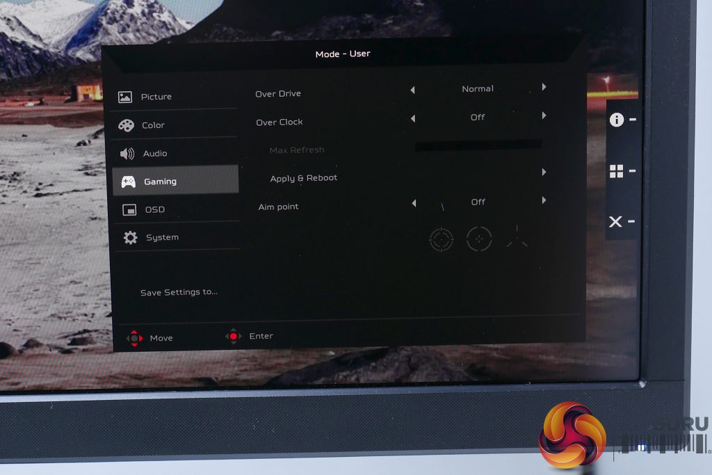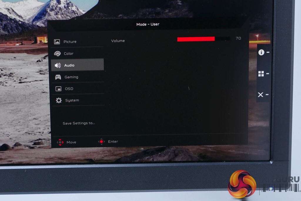 The Acer XB273K uses the same excellent OSD and control system we’ve seen on other recent Acer displays. A mini joystick and four buttons are ranged down the right side of the back of the display where they’re nice and easy to reach.