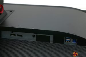 You do, though, get a selection of USB 3.0 ports, with two on the back and two on the side. Plus, the power supply here is internal with a C13 power connection. Often when G-Sync is included, there’s no longer room to squeeze in a power supply so an external power brick is required. The sheer size of this screen negates that.