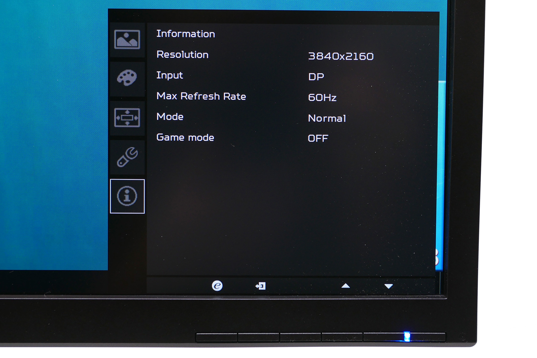 The penultimate screen shows a motley selection of options, including input selection, overdrive, the option to turn off the power LED and the reset option. The final screen just shows screen information like resolution, refresh rate and firmware version.