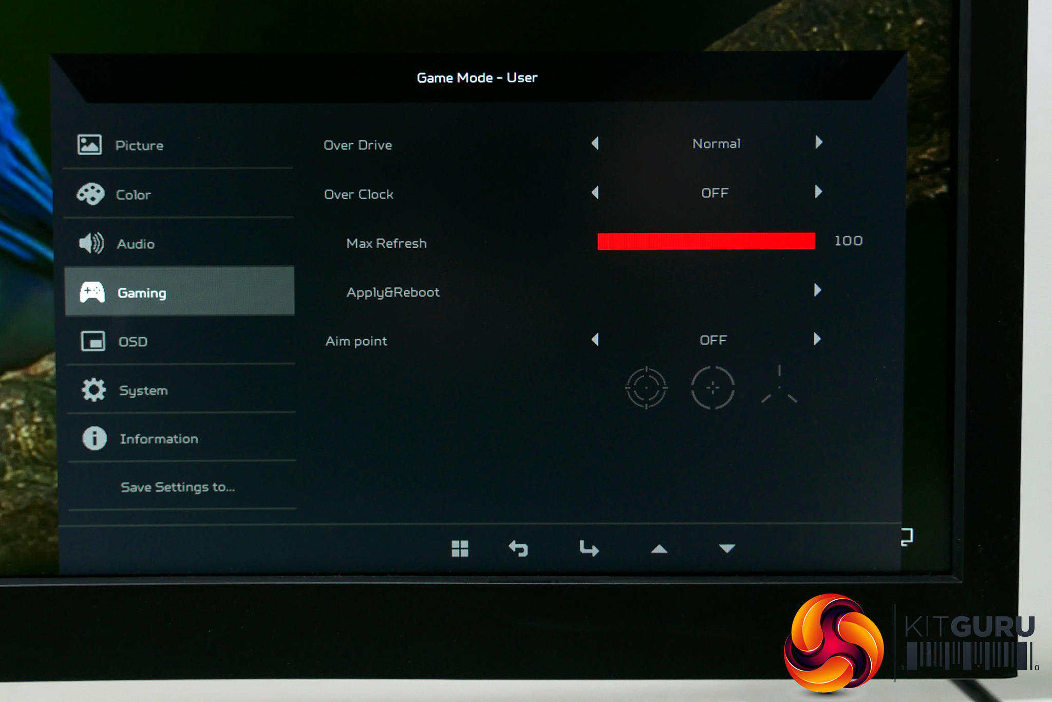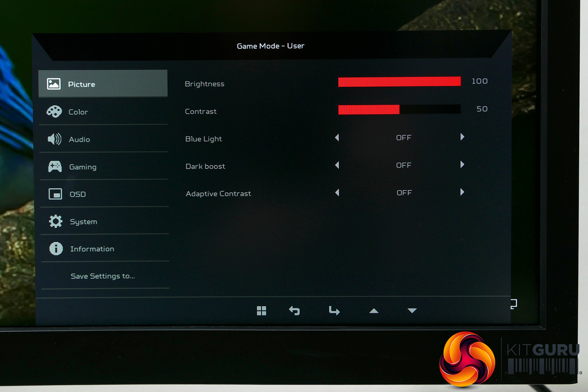 Acer has stuck with a simple input system for its OSD. There are no touch buttons or mini joysticks here but instead just five normal buttons that sit on the underside of the frame, next to the power button.
