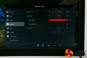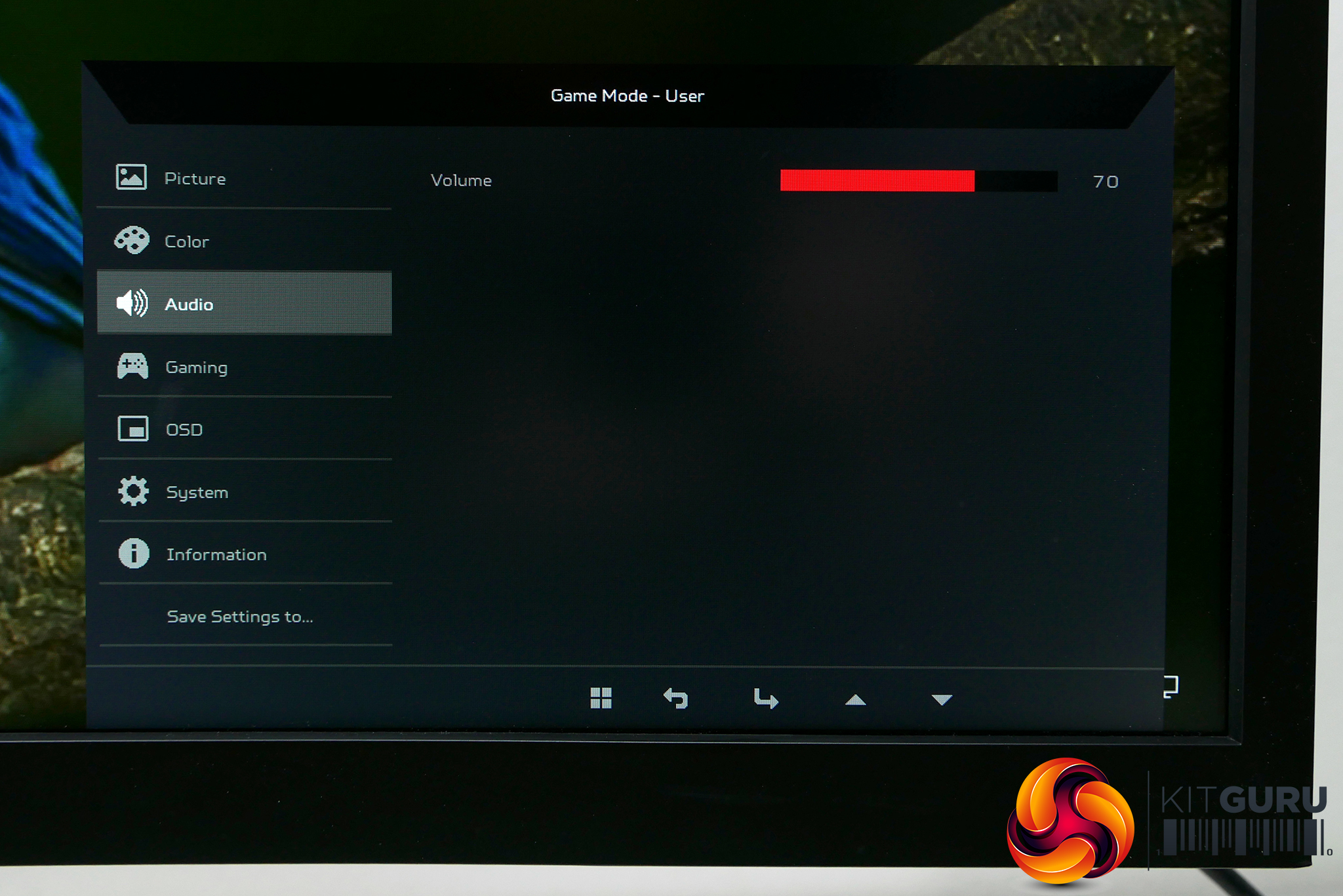 The Audio tab is dedicated solely to adjusting the volume of the speakers, or any attached headphones, while Gaming provides options for overdrive and overclocking the display. The former allows for four levels of overdrive while the overclock option lets you boost the display up to 120Hz.