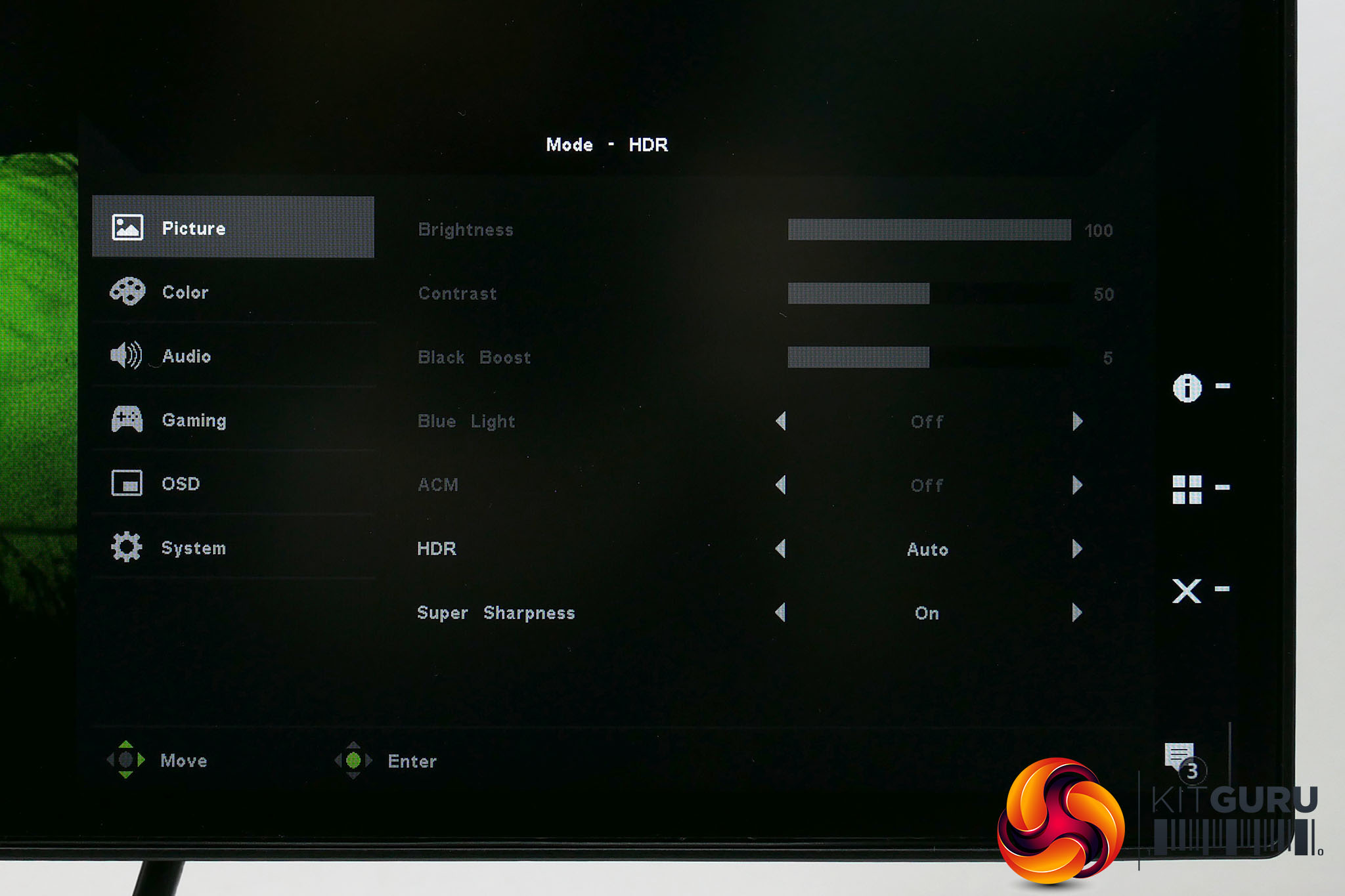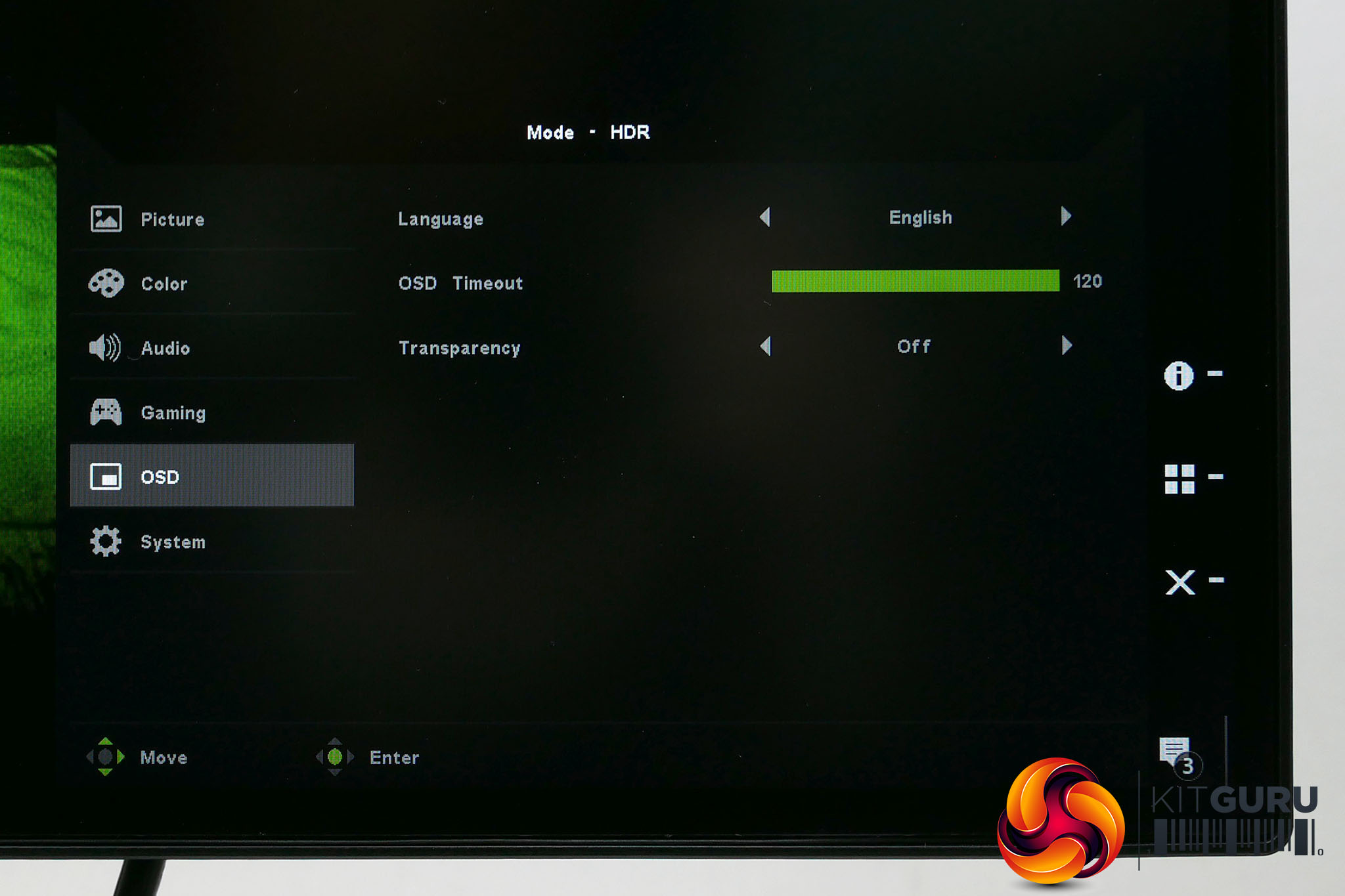 The Acer PE320QK’s on screen display (OSD) is packed with options but thanks to a responsive control system and intuitive menu layout it’s easy to get to grips with.