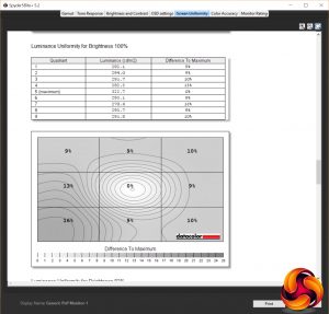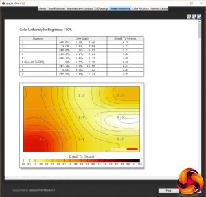 The uniformity of this display is little less impressive. With it being so large, it’s no surprise it struggles a little, but for a professional display we’d hope for a little better. With a peak brightness variance of 16% and average of 9.4%, it’s no better than some far cheaper displays.