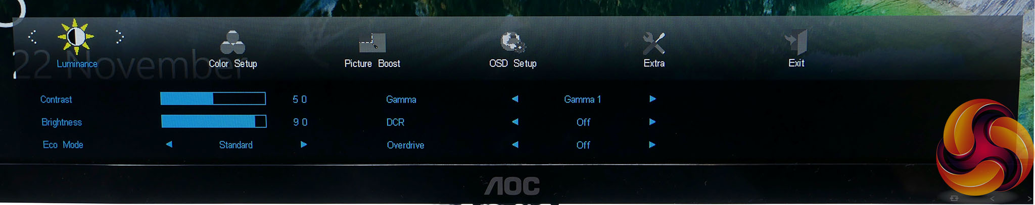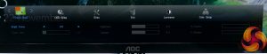 One thing that AOC regularly seems to slip up on is the ease of use of its OSD system, and once again that is the case here. The OSD is laid out horizontally and it uses four buttons to move around it: back, left, right and select.
