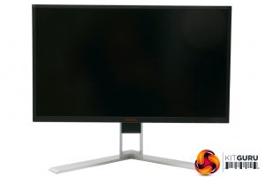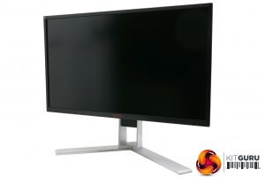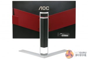 An all-metal, silver-coloured stand is the highlight. It’s sturdy, simple and elegant, and sets off the black frame of the display nicely. Less convincing is the frame itself. Mostly plain matt black plastic, the bottom section of bezel has a faux brushed metal effect and a rather uninspiring red AGON logo in the middle. It’s not totally off-putting but it’s not quite on the level of the most stylish displays.