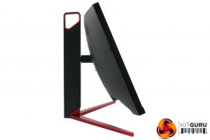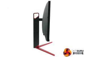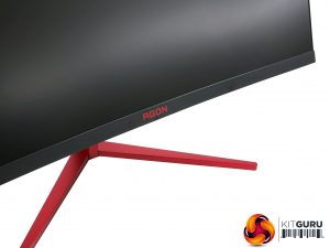 The positivity continues once the display is assembled – a simple case of screwing on the base to the stand and clipping the display on. The display looks very smart, with its gently curved screen, slim, low-profile bezels and slender stand. The red base and AGON logo on the lower bezel aren’t entirely to our taste but they’re not too outlandish.