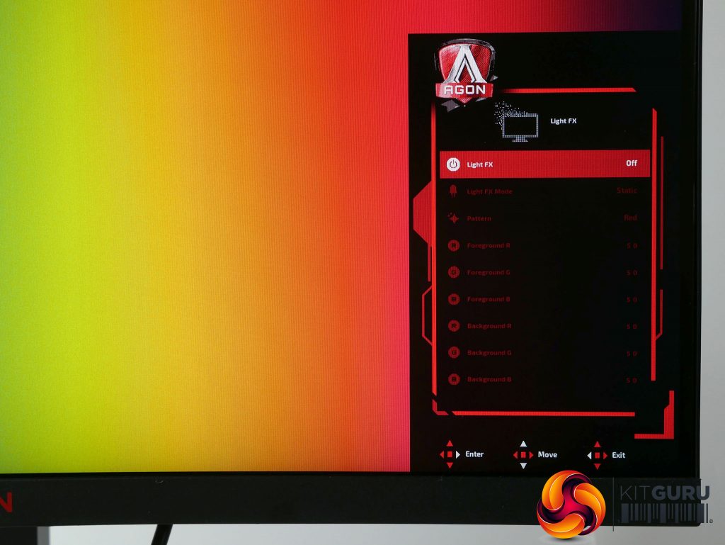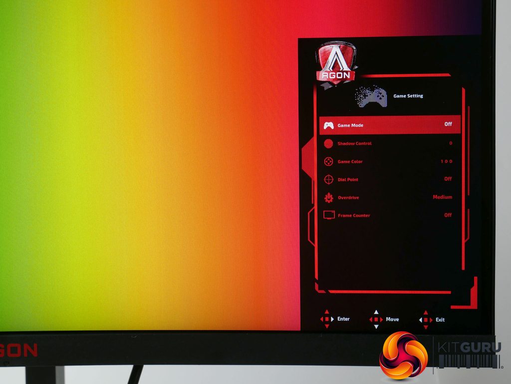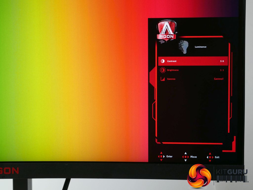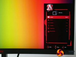 The AG273QCG’s OSD is controlled via a little four-way directional stick on the underside of the display. We normally consider this a good sign, as menus setup for these control schemes – rather than having a row of several buttons – tend to be quicker and more intuitive. Not so here.