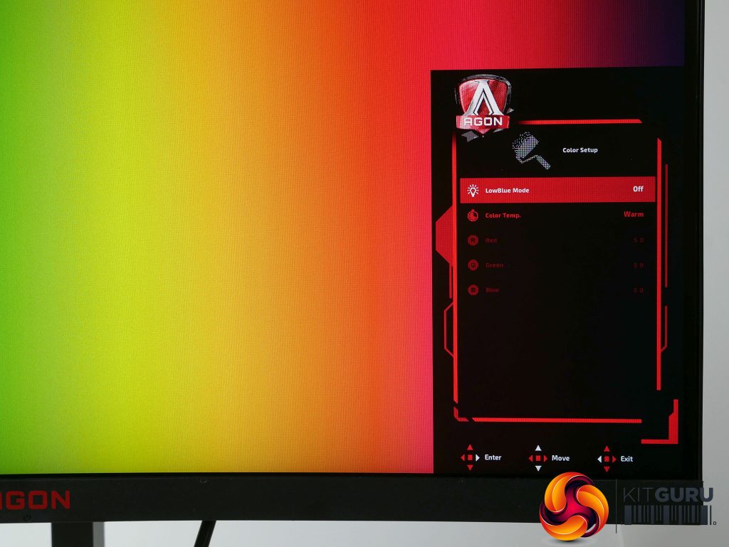 Also, for all settings other than those in the Color Setup menu, the user-programmable Gamer 1/2/3 settings will properly store and switch between these settings. However, the colour settings will remain throughout all the presets. This means there’s no way to setup completely custom profiles for different uses.