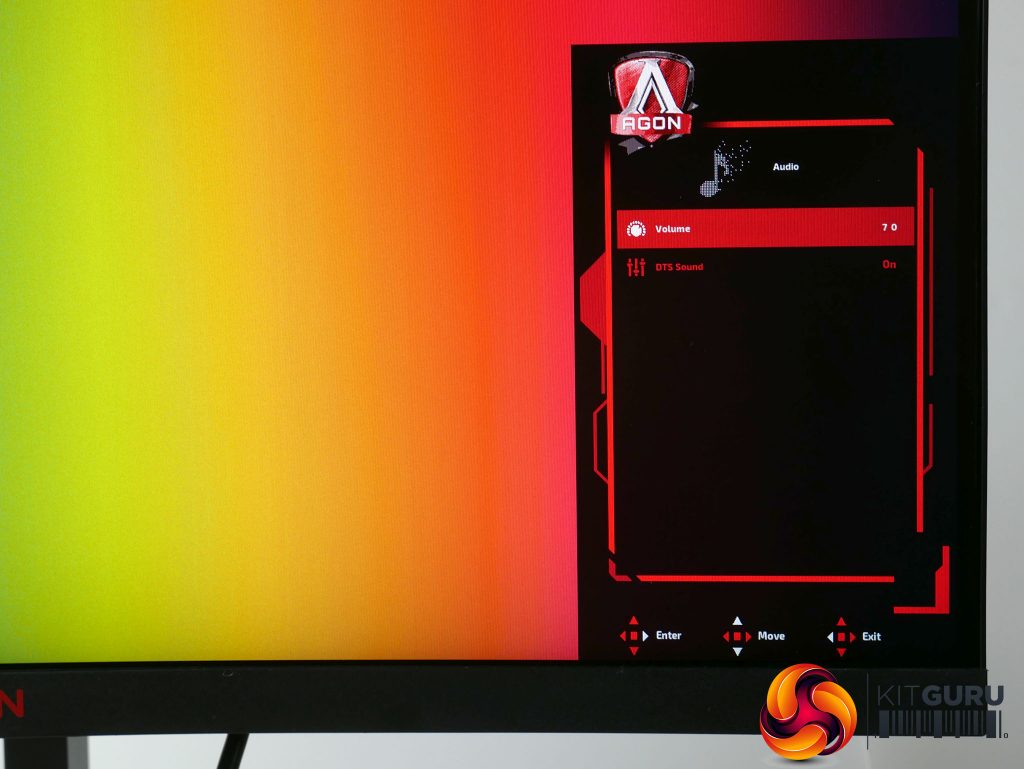 The audio menu contains a volume control for the speakers and an option to turn on DTS audio. Amazingly this does markedly improve the audio, pulling out some of the tinny quality of the speakers and improving the audibility of dialogue, though it can’t work miracles – most laptops put this monitor’s speakers to shame.