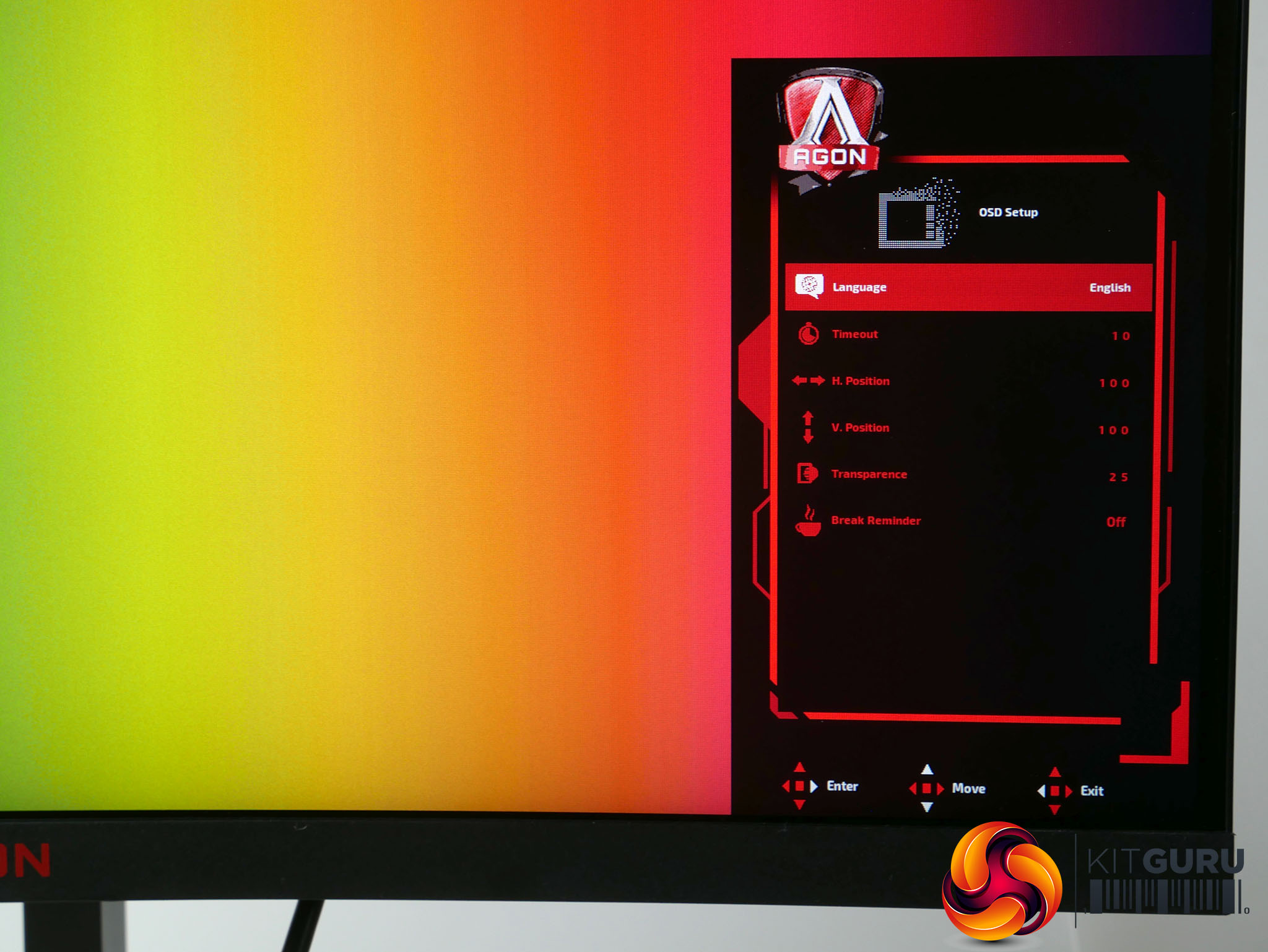 The Extra menu provides some basic information such as the current refresh rate and a reset feature, while rounding things out is the OSD setup menu that has the usual options for positioning the OSD and changing its transparency.