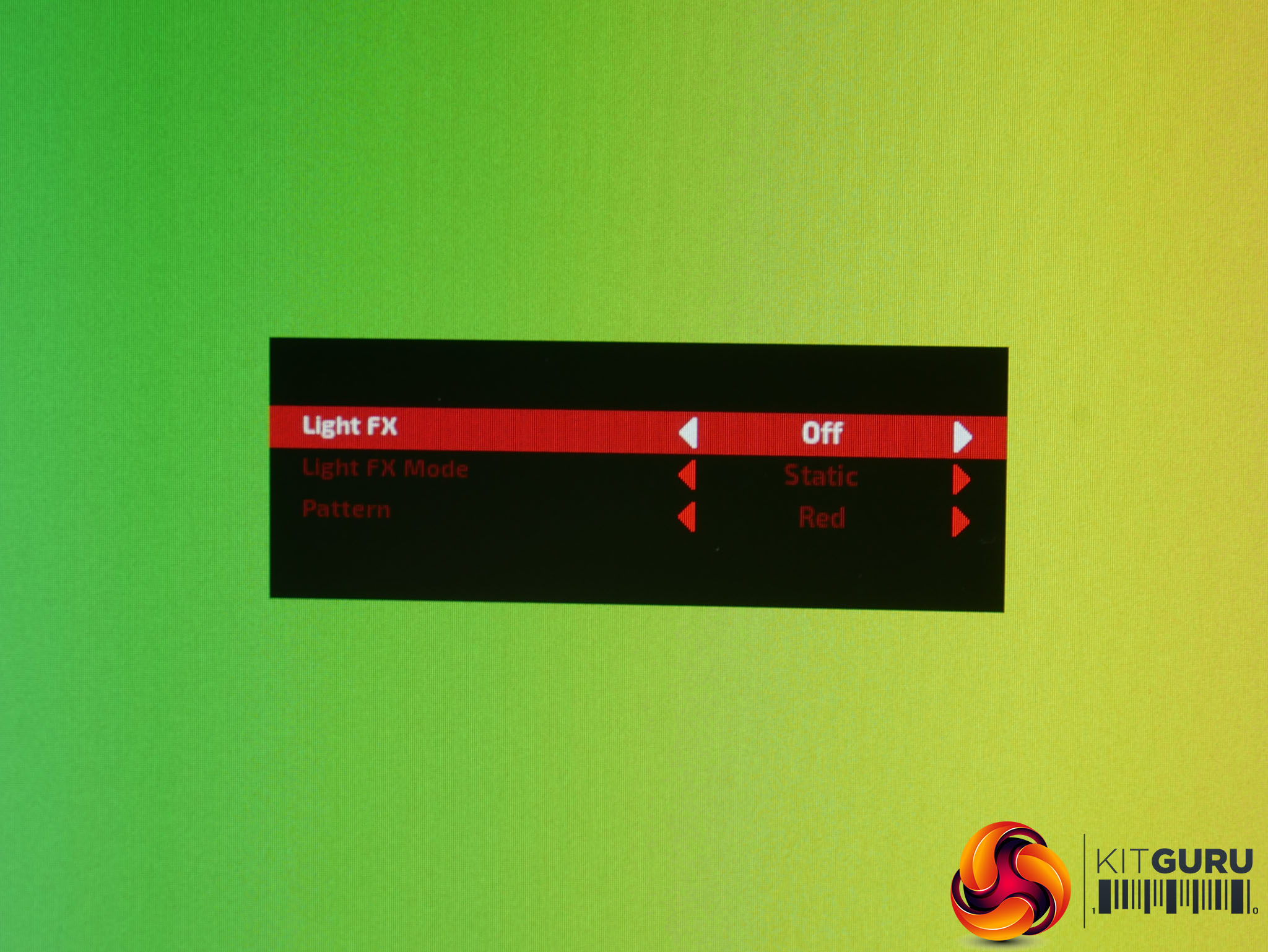 Tap to the right and you’ve got quick access to a basic version of the RGB lighting (called LightFX) menu.