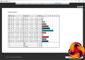 Moving onto our objective testing, we used a couple of different colorimeters and measuring software to check the image output of the display.