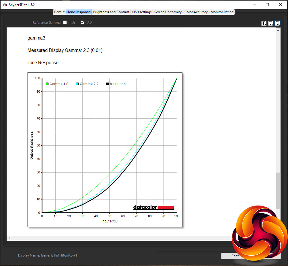 Next up is the tone response, or gamma test. This checks the gamma curve of the display, which is the measure of how quickly the image changes from light to dark. A higher value makes for a darker looking image while a lower value looks lighter. The standard for PCs is 2.2.