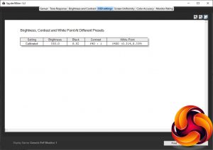 We start our testing with the Xrite iDisplay Pro, in conjunction with DisplayCal software. This we use to test the contrast of the display, as this is something our other test equipment tends to under report.