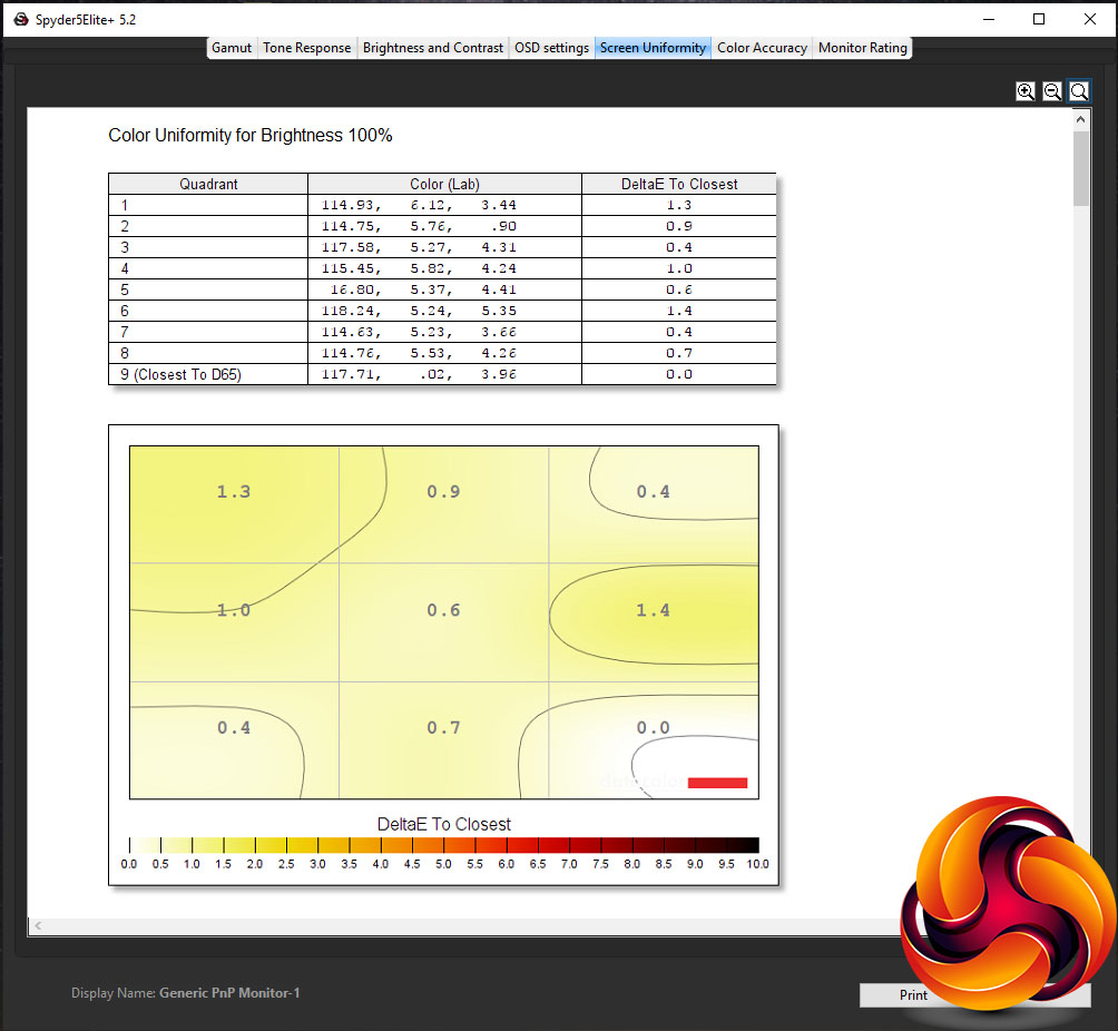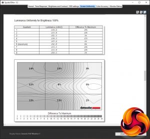 The penultimate test checks the uniformity of the display. Ideally a monitor should provide the same image performance across its whole screen, but that isn’t always the case. Here we can see that in terms of the brightness of the image, it’s not too bad but there’s a consistent drop of around 15% across nearly half the screen. However, on average the figure is an acceptable 9% and, moreover, in person the difference isn’t very noticeable.