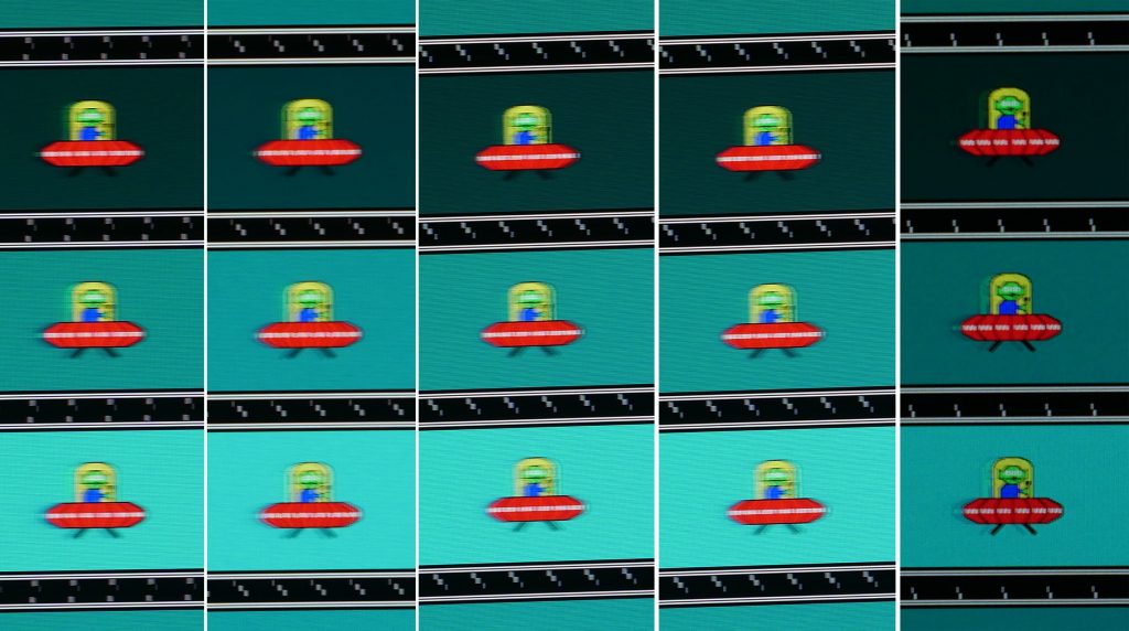This monitor also offers Nvidia’s ULMB backlight-strobing blur reduction mode and it works very well. There’s a very clear increase in sharpness of moving objects such as in BlurBusters’ moving UFO test (see above). You do actually get an increase in ghosting with this option, such that the UFO appears to have a trailing ghost, but the overall image is clearer.