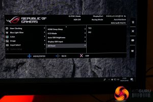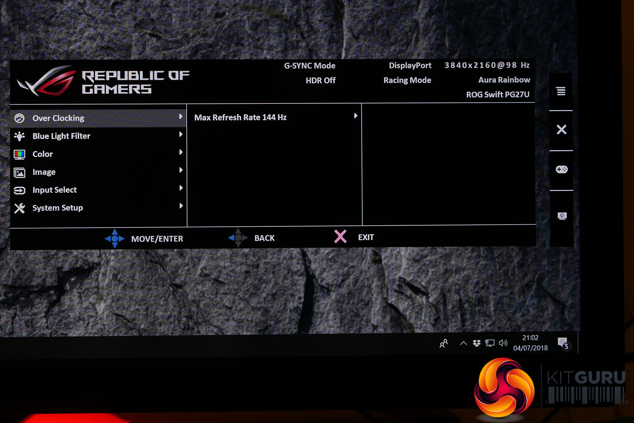 First up is the Over Clocking menu, which provides the option to boost the display’s refresh rate from its default maximum of 120Hz up to 144Hz. We largely didn't feel the need to enable this as 120Hz felt sufficiently fast, but at least the option's there.