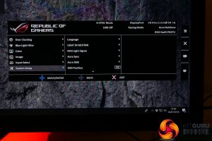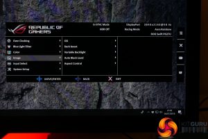 That’s it for the main menu but you also get two further game-oriented menus that should be familiar to those with existing Asus gaming monitors. The GameVisual menu provides a number of presets supposedly tailored for different games. As ever the default is Racing Mode, which seems rather random, but it’s basically the one with the least number of other options enabled.