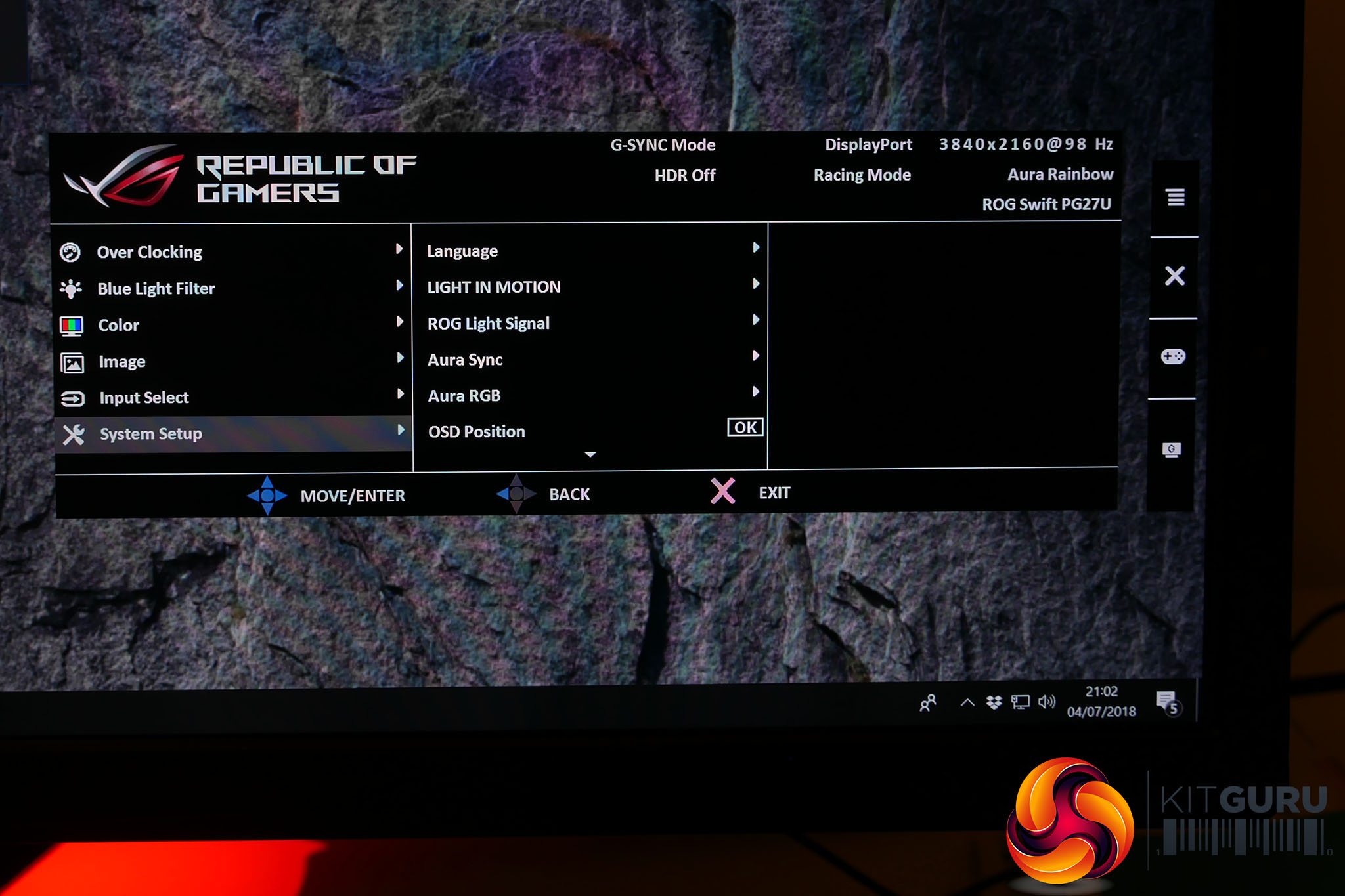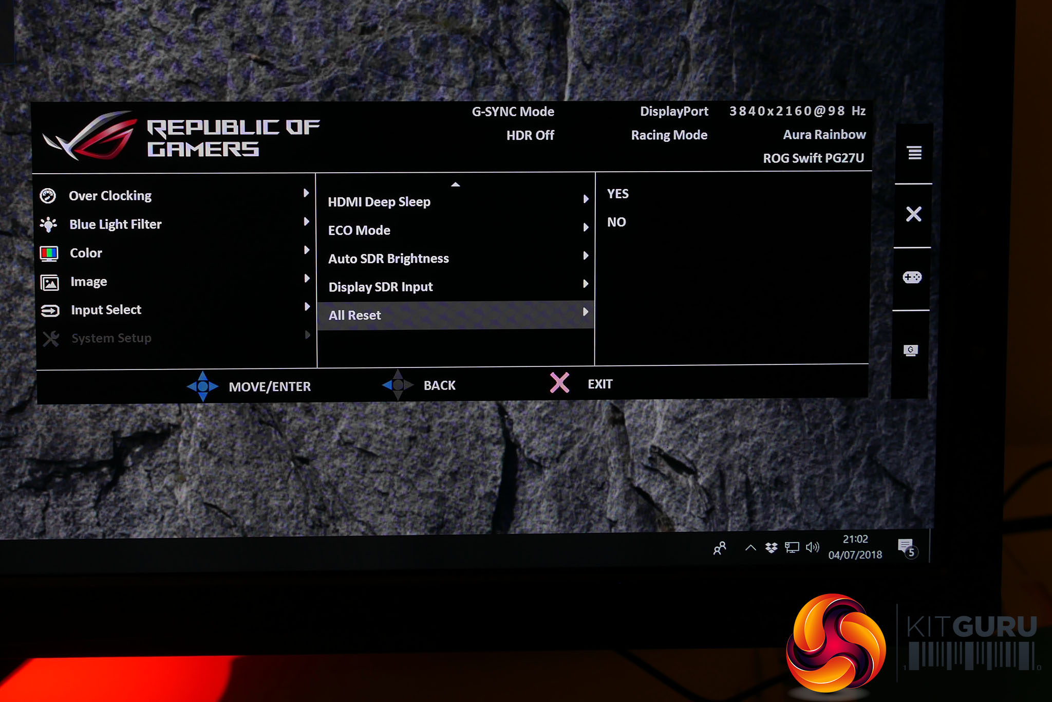 Controlling the onscreen menu of the PG27UQ is nice and easy thanks to the intuitive control system that has a mini-joystick providing up, down, left and right movement, and you can click it in for item selection.