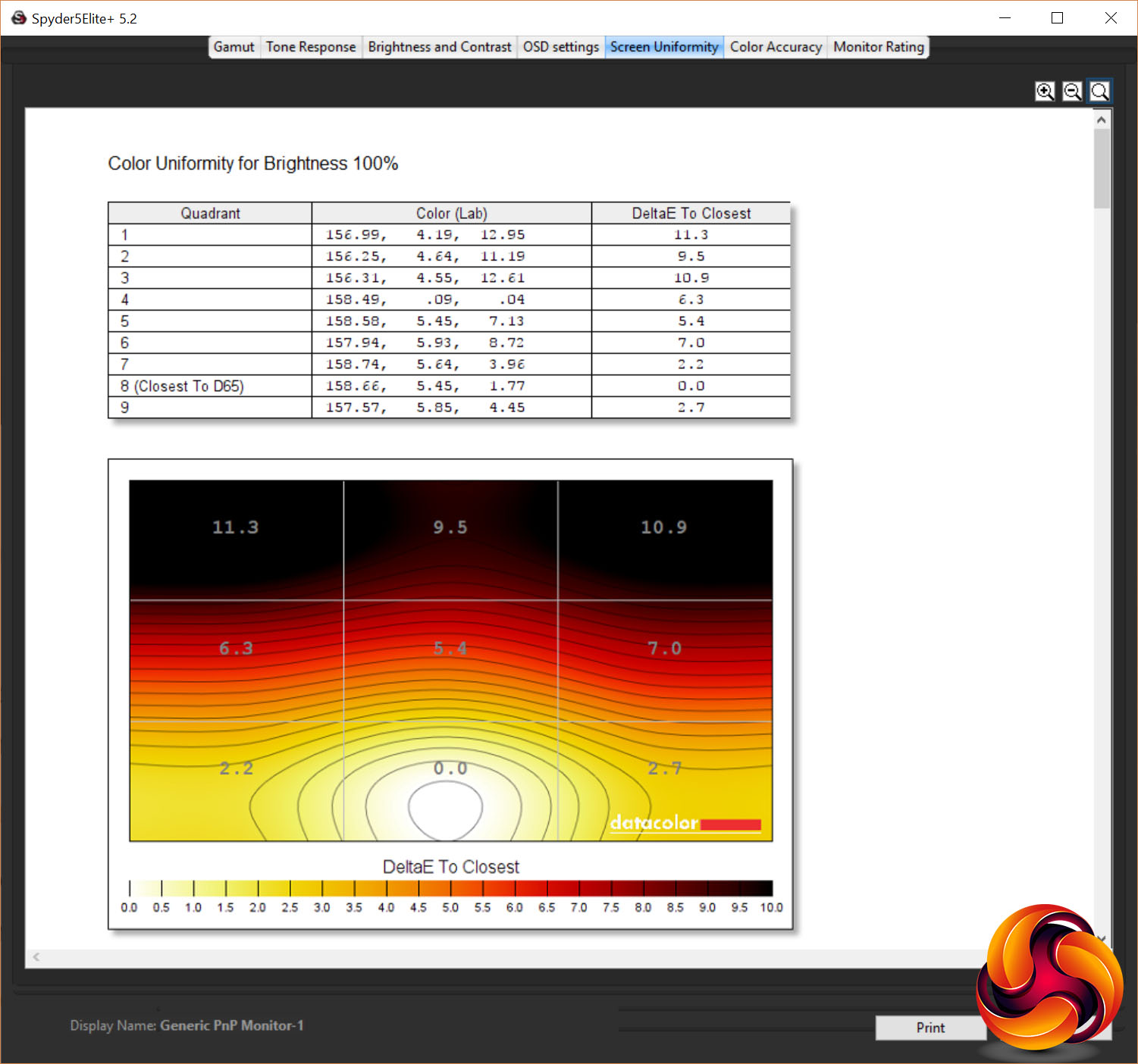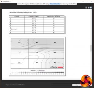 Brightness uniformity is up next and the PG27UQ put in a decent performance. At 100% brightness it showed just a 3.4% average variation in brightness across the area of the screen – not bad considering you’ve got 384 separate LEDs lighting it up.