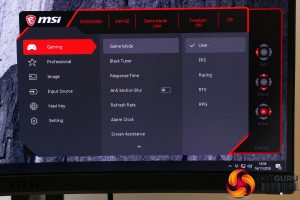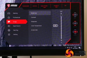 The OSD itself responds quickly and has a really intuitive layout. It’s always clear which direction you need to push the joystick to get things done, to the point where MSI hasn’t felt the need to add a few extra buttons for some key functions. It’s the epitome of how easy and intuitive joystick-based OSD controls can be.