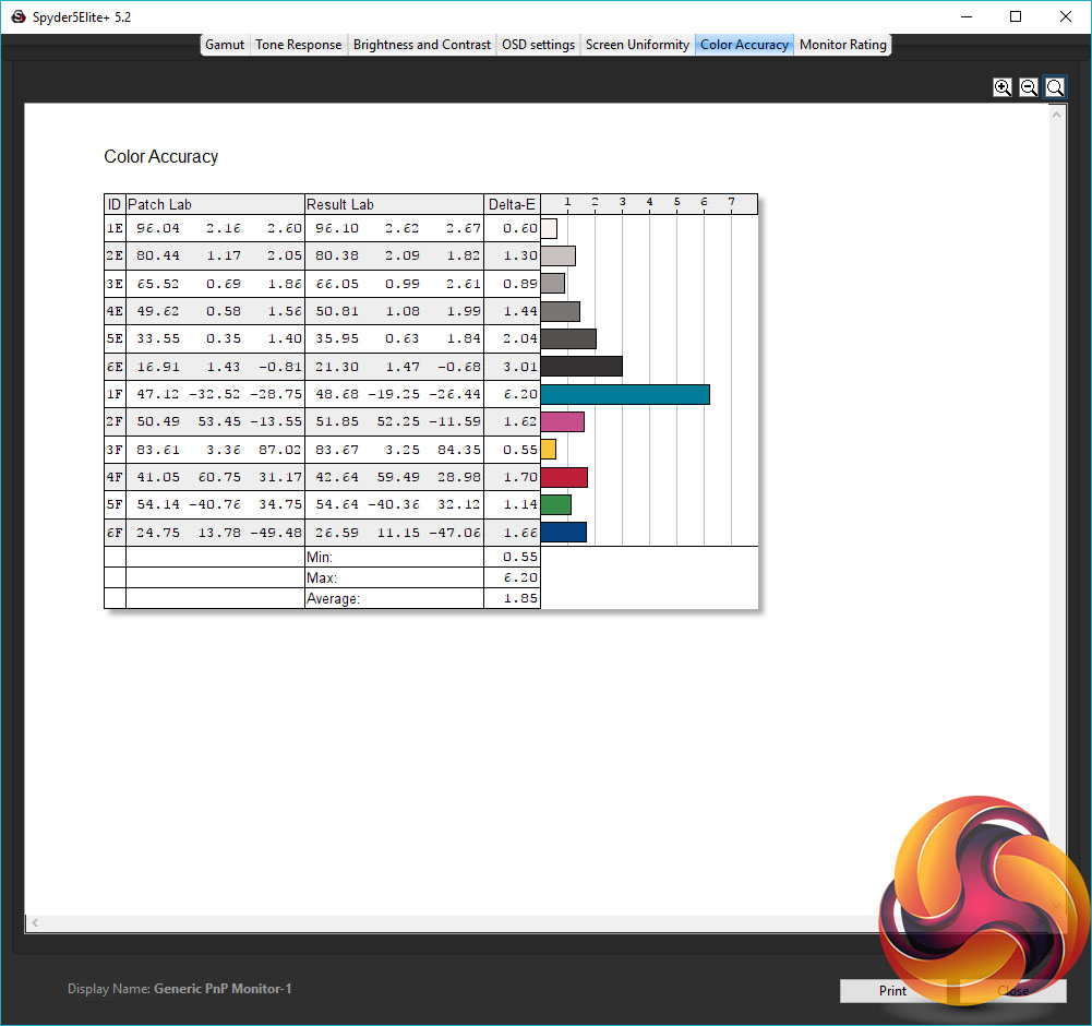 Finally, we test for this display’s ability to distinguish between small colour values, with a number called the Delta E – the lower the better. With an average Delta E of 1.85 and maximum of 6.20, this display does well, showing that its use of a higher-quality 8-bit panel does indeed result in finer colour fidelity.