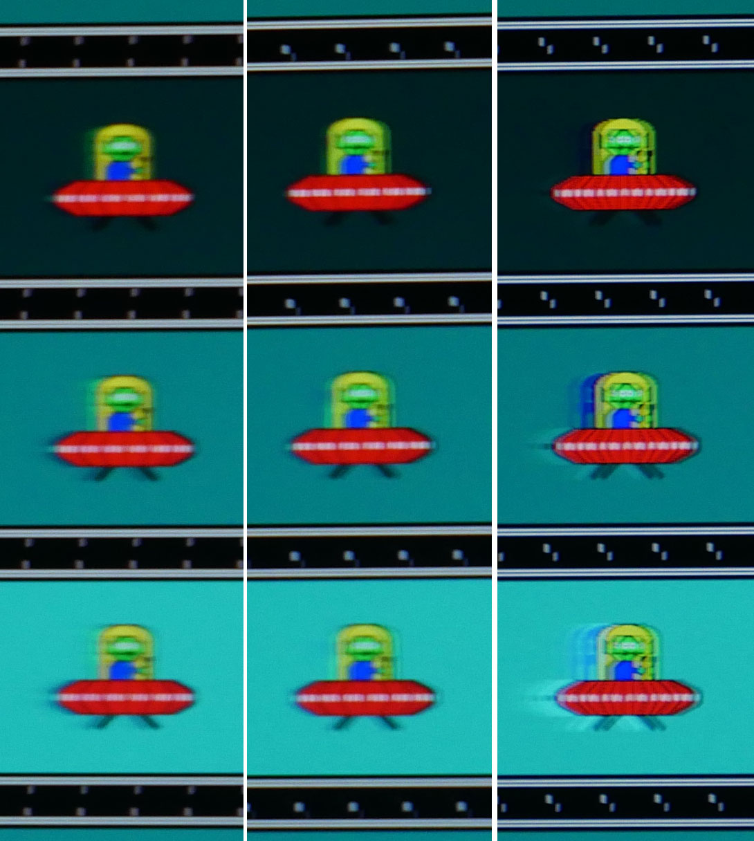 Meanwhile, the six different response time settings provide a really nice demonstration of how a monitor’s overdrive setting works. At level 1 there’s noticeable normal ghosting, where there’s a slight softness introduced to the moving images, due to the previous frame’s image being left behind.