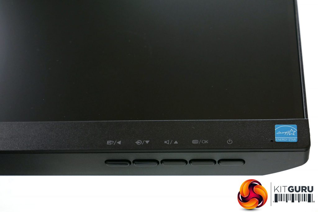 Next to the power button on the underside of the frame are four buttons that, from left to right are: back/close the menu, move down, move up and open the menu/select an item. They also double for quickly changing input and adjusting the volume.