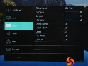 The Picture menu is where you can adjust brightness, contrast and gamma along with other more esoteric image settings such as the automatic contrast and pixel response modes.