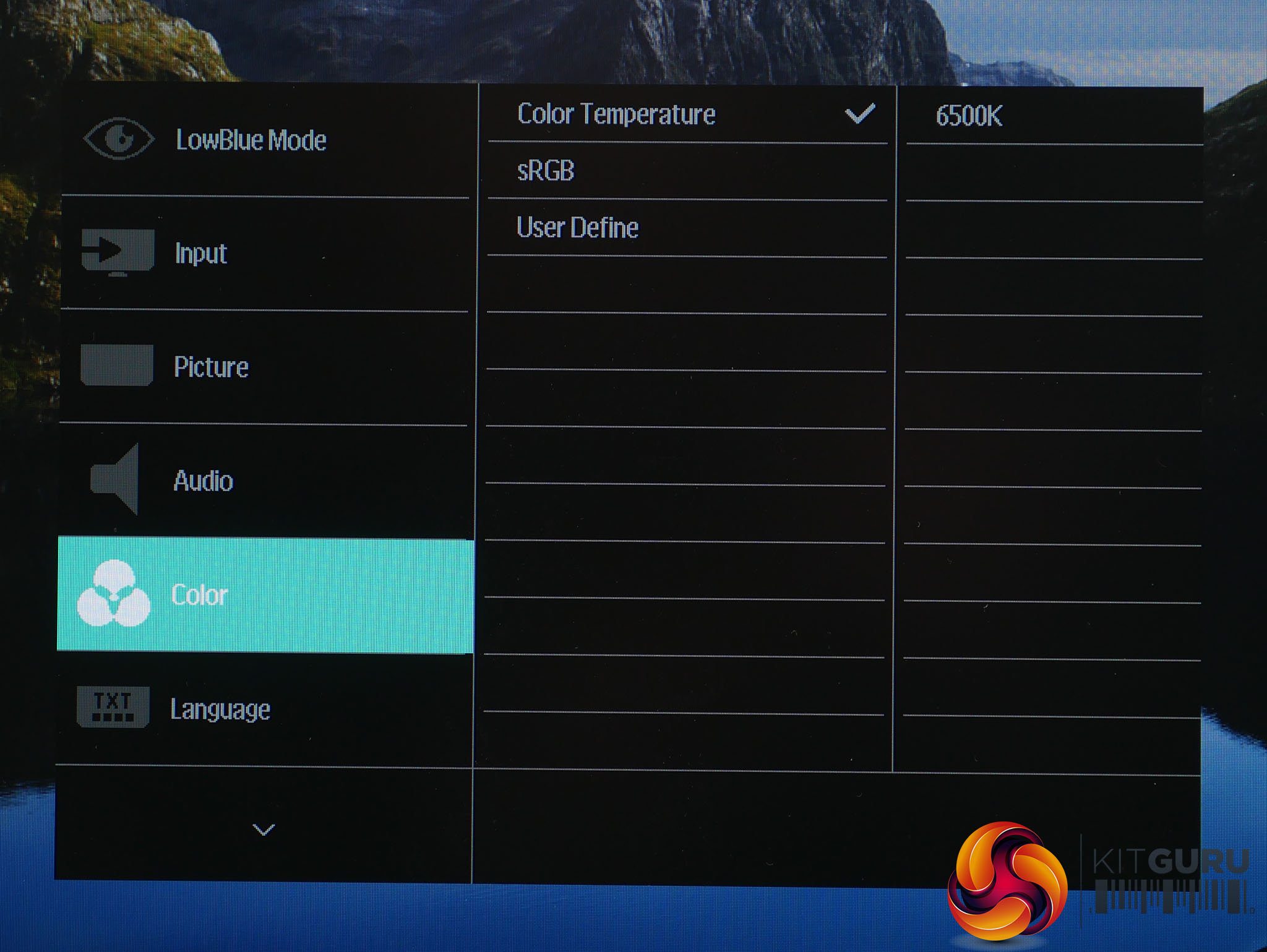 In the Colour menu there are just three options. The first lets you choose the display’s colour temperature, the second enables an sRGB mode and the third provides user-adjustable colour balance.