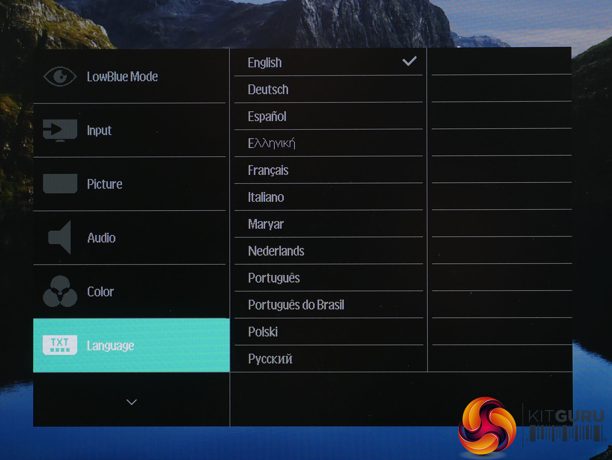 Next up is that comprehensive language menu, then it’s the OSD Settings that allow you to change the position and transparency of the menus.