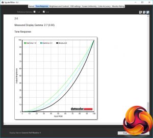 There are five different gamma settings available through the OSD and our Spyder5 shows the display does a fine job of matching its claimed numbers. The default of 2.2 is spot on while the other options are all close enough to get by. We’d stick with the default gamma, but if you want the image to appear darker you can turn this up, or turn it down for a lighter looking image – great for seeing enemies hiding in the dark while gaming.